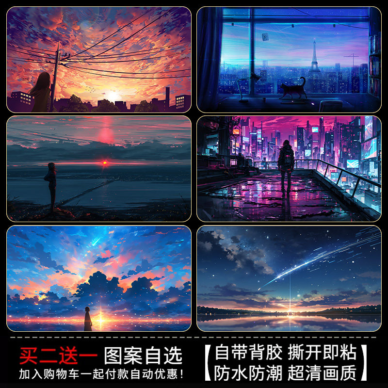 动漫风景海报二次元墙贴大学生男卧室宿舍唯美壁纸遮丑贴画自粘