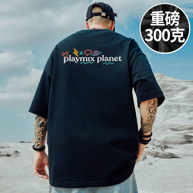 180高个子加肥加大码男装美式新款宽松夏季纯棉胖子T恤短袖半截袖