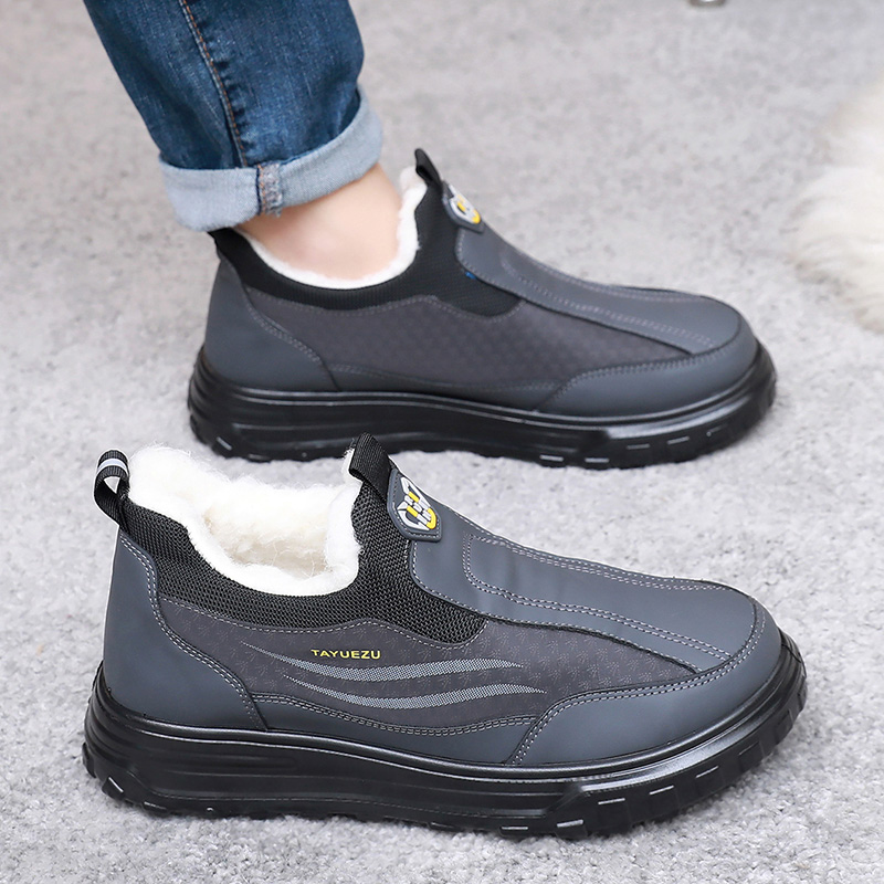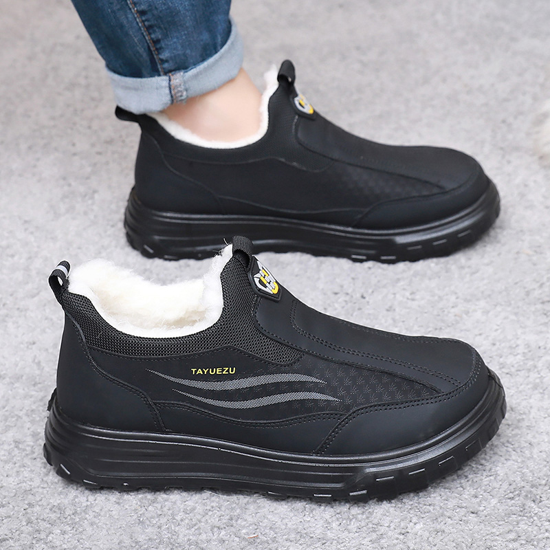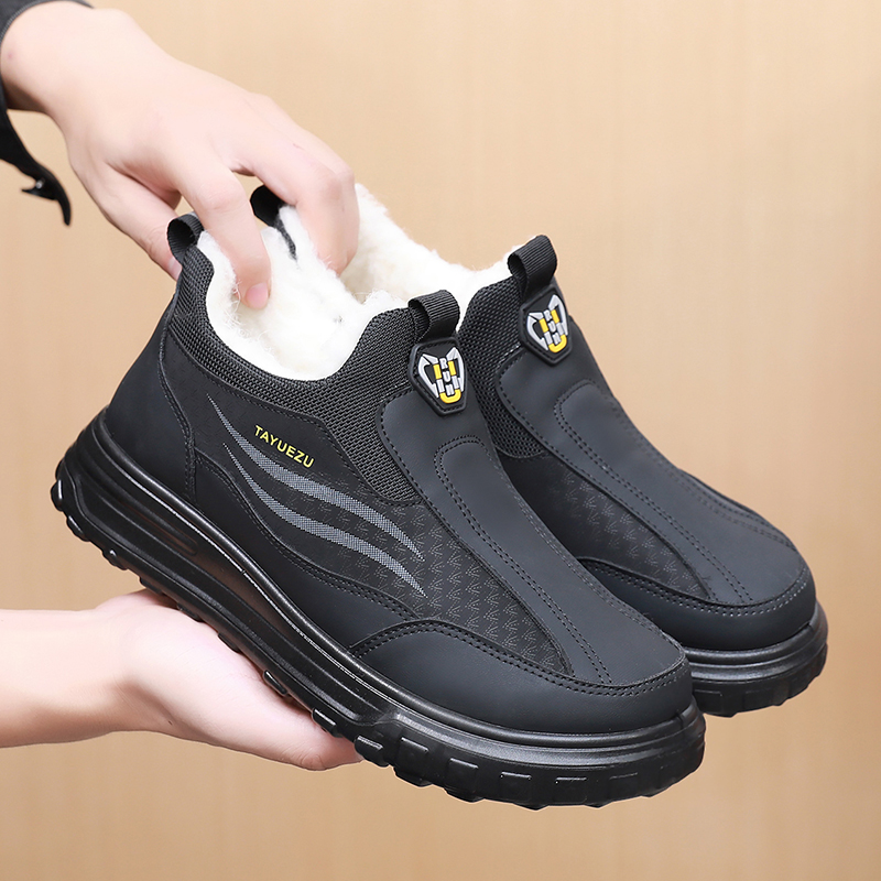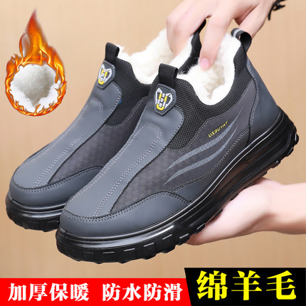 2025男冬季新款老北京棉鞋加绒加厚皮面雪地靴防水防寒保暖爸爸鞋