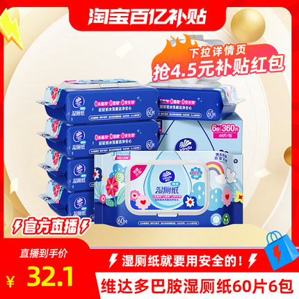 【春节不打烊】维达多巴胺湿厕纸60片6包清洁湿厕巾私处卫生湿巾