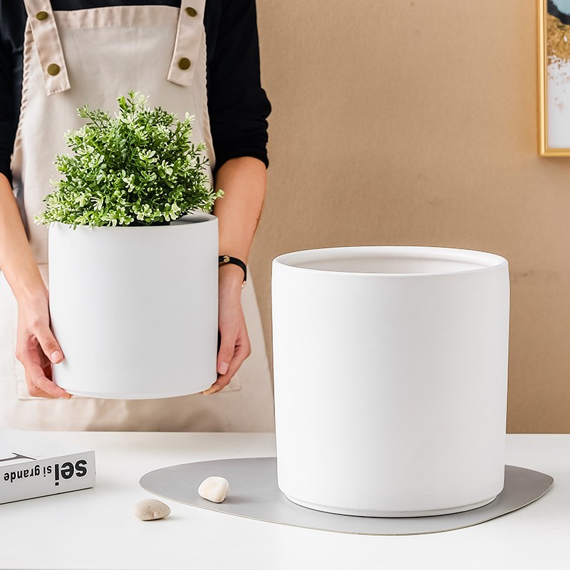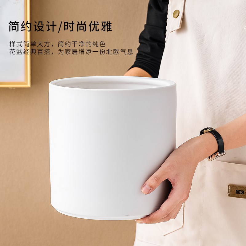 大码陶瓷花盆简约亚光白色直筒型绿植盆栽花卉蝴蝶兰惠兰盆大号盆