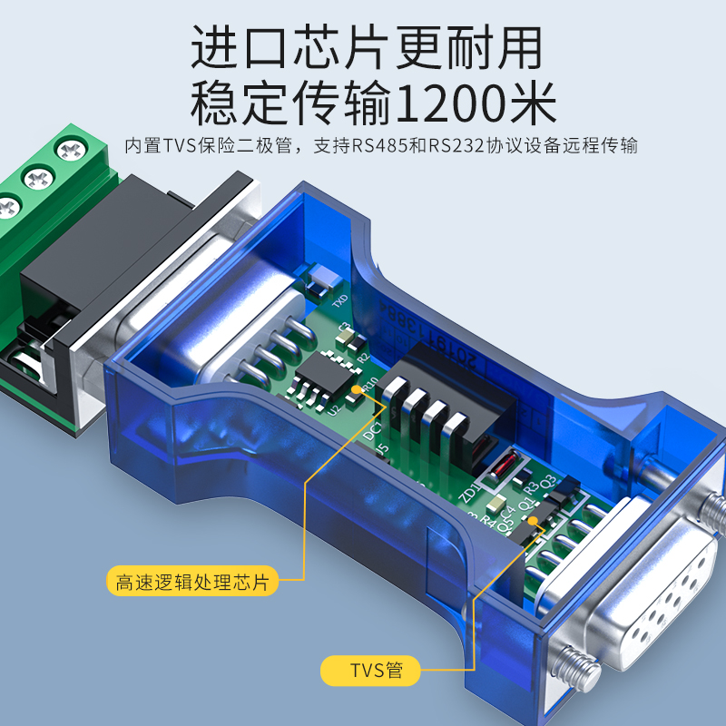帝特DT-9015工业级双向串口RS232转RS485转换器光电隔离器LED指示灯r232转r485通讯模块插头端子232转485协议