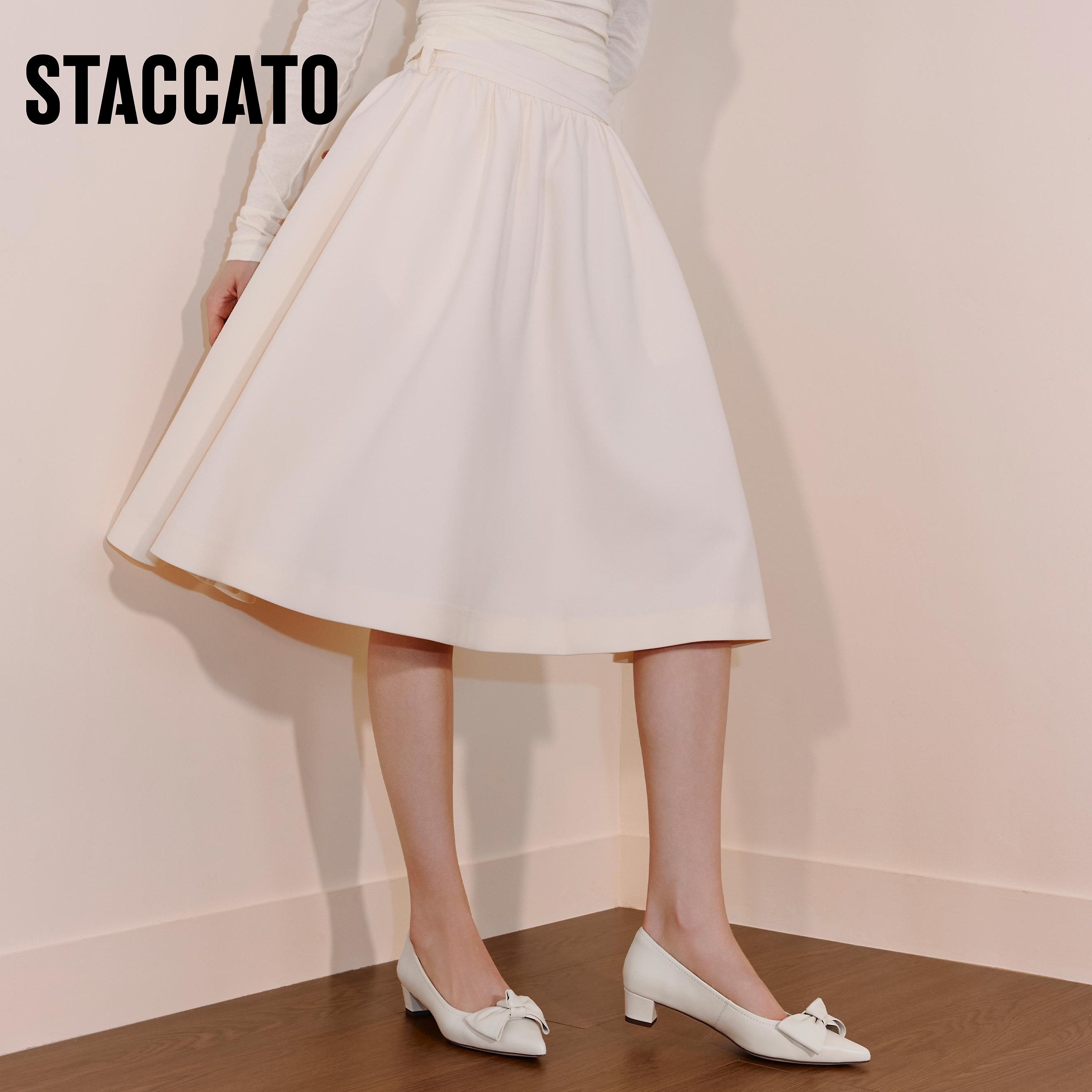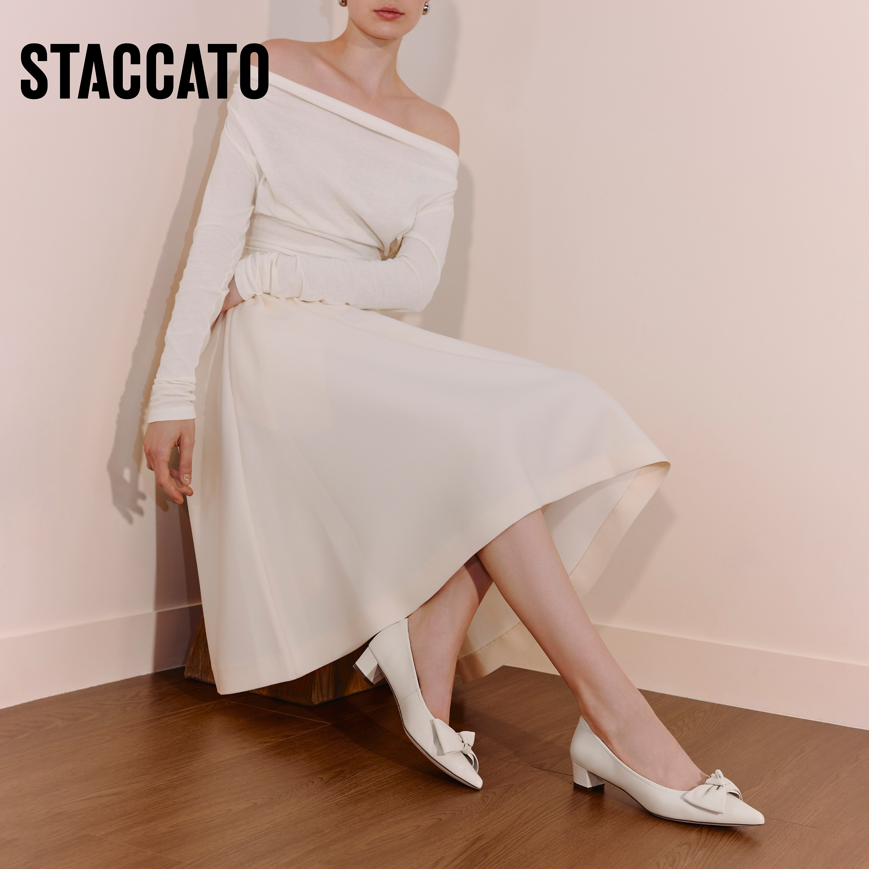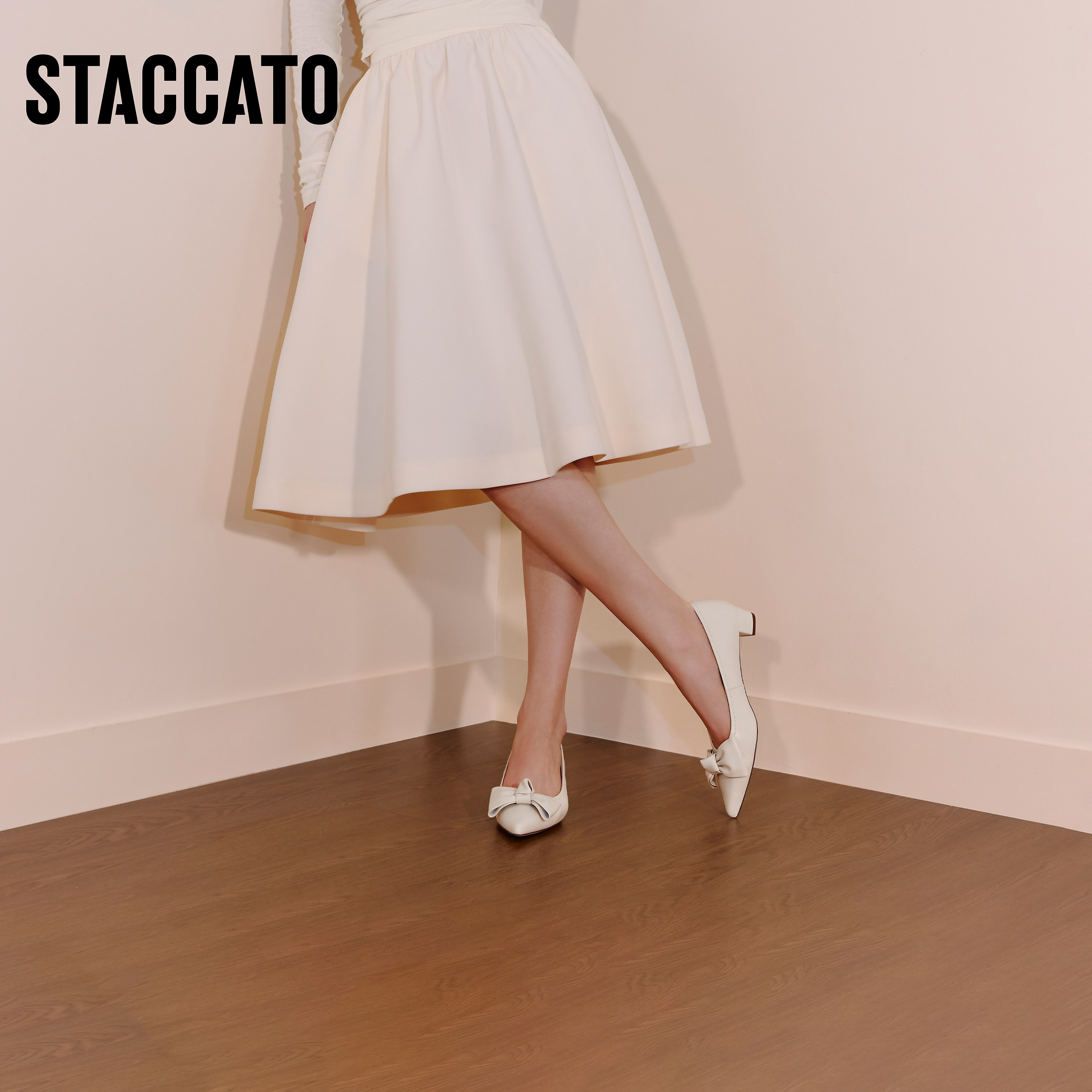 思加图2025新款通勤法式粗跟单鞋浅口鞋气质尖头白色女鞋Y0105CQ5