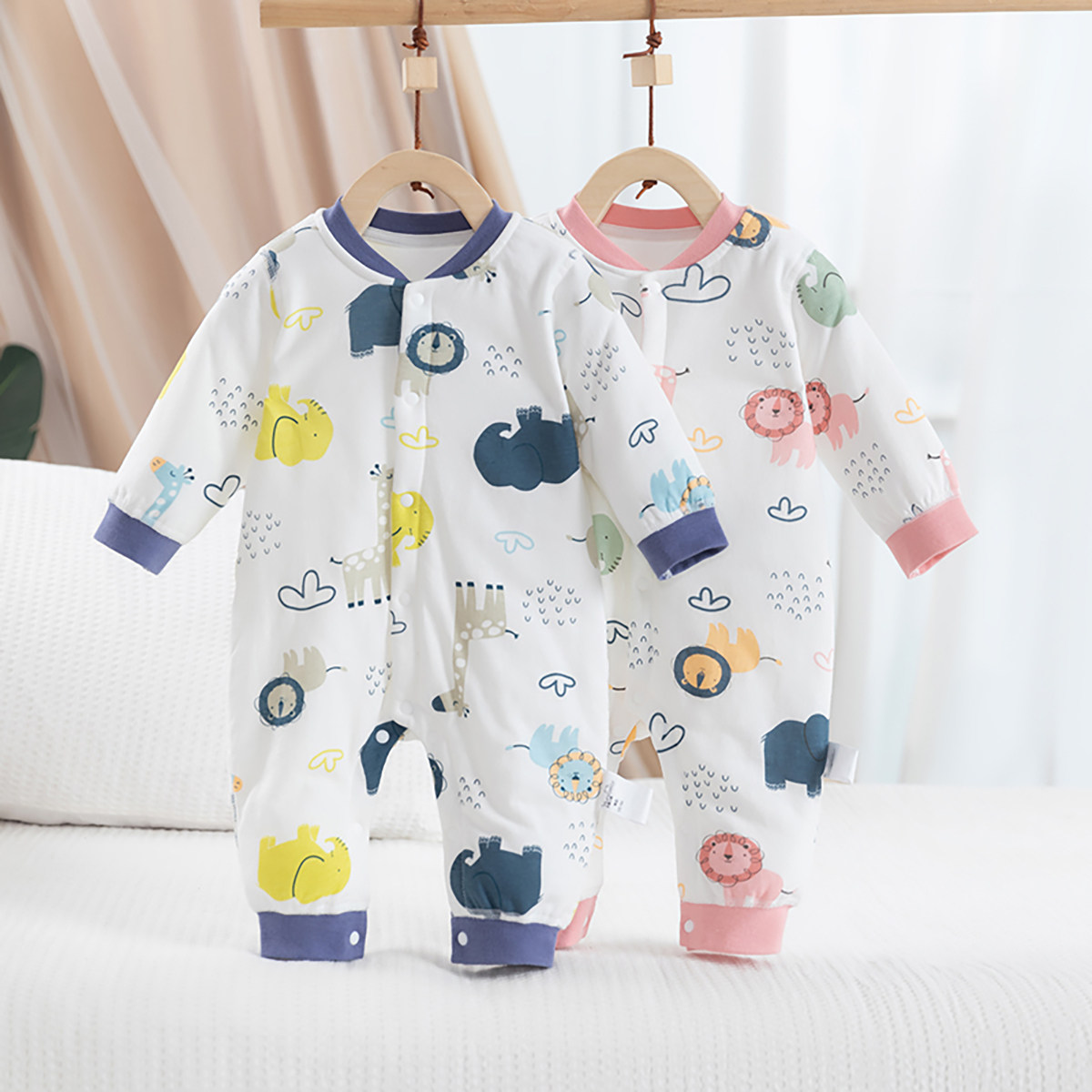 欢喜小熊婴儿连体衣新生儿夹棉保暖外出纯棉衣服宝宝冬季哈衣爬服