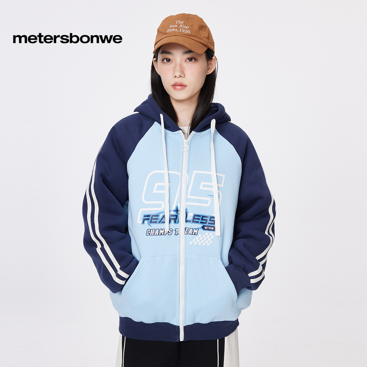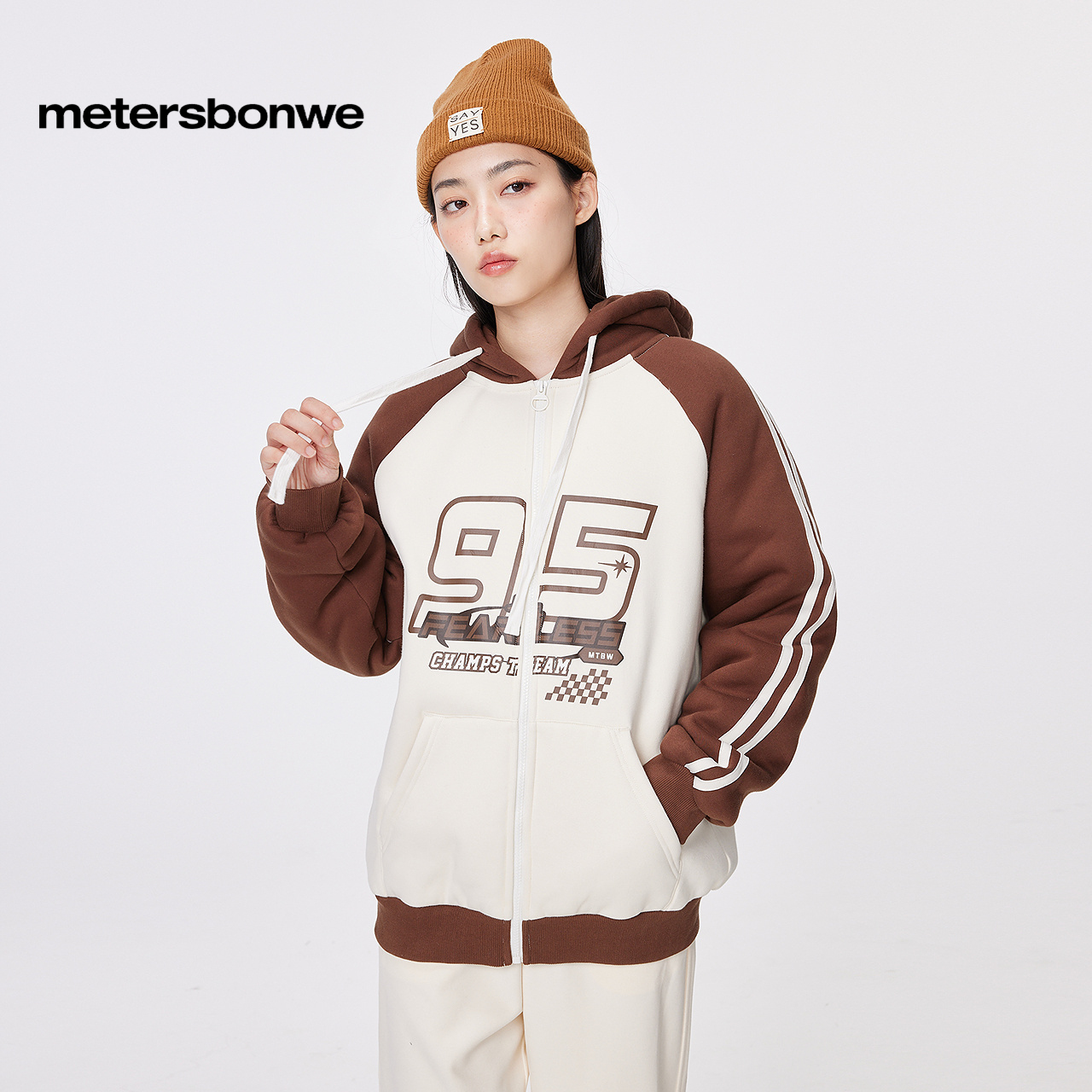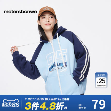 美特斯邦威宽松长袖卫衣女士春夏新款加绒加厚百搭连帽开衫女上衣
