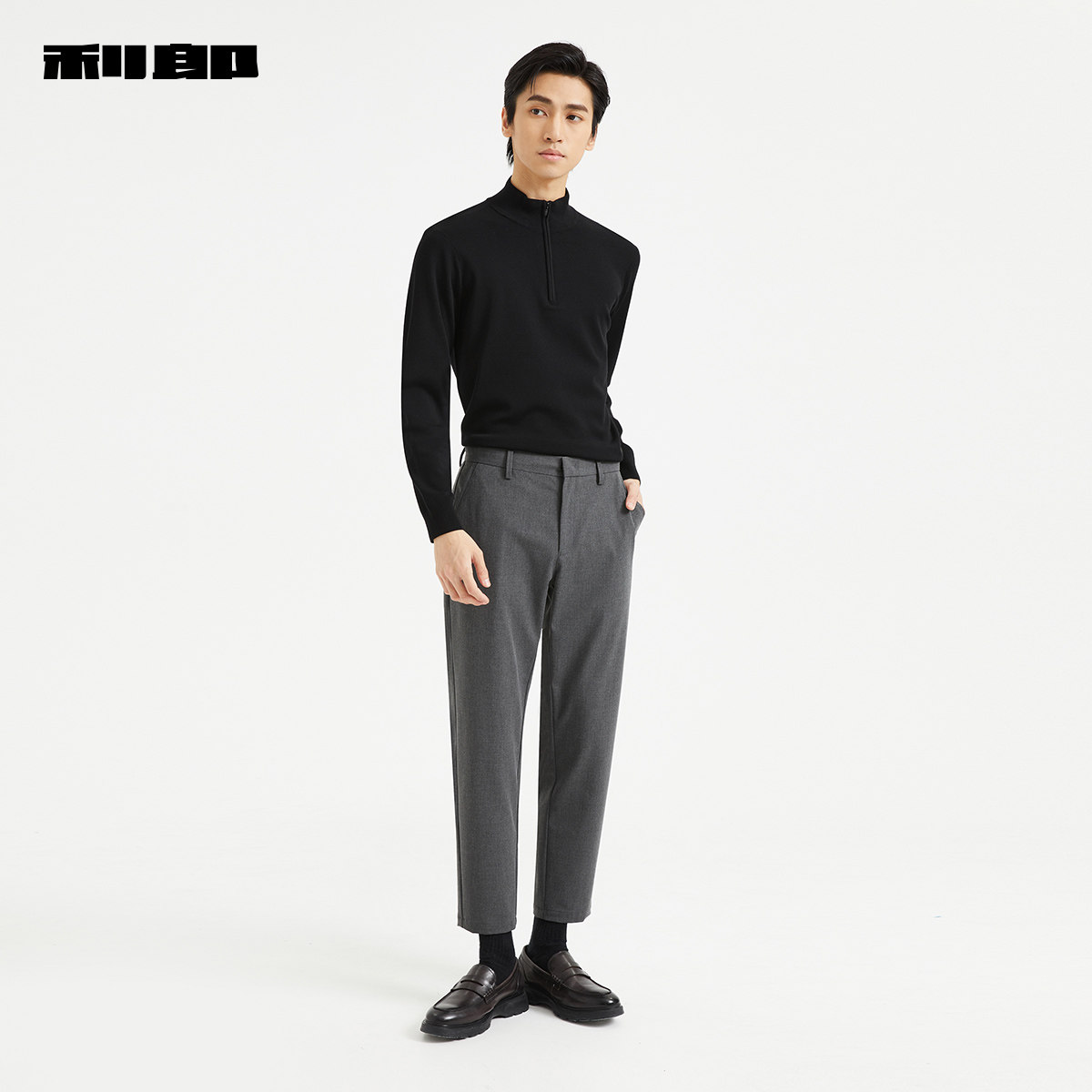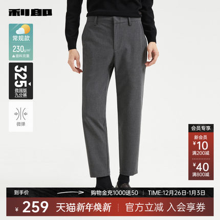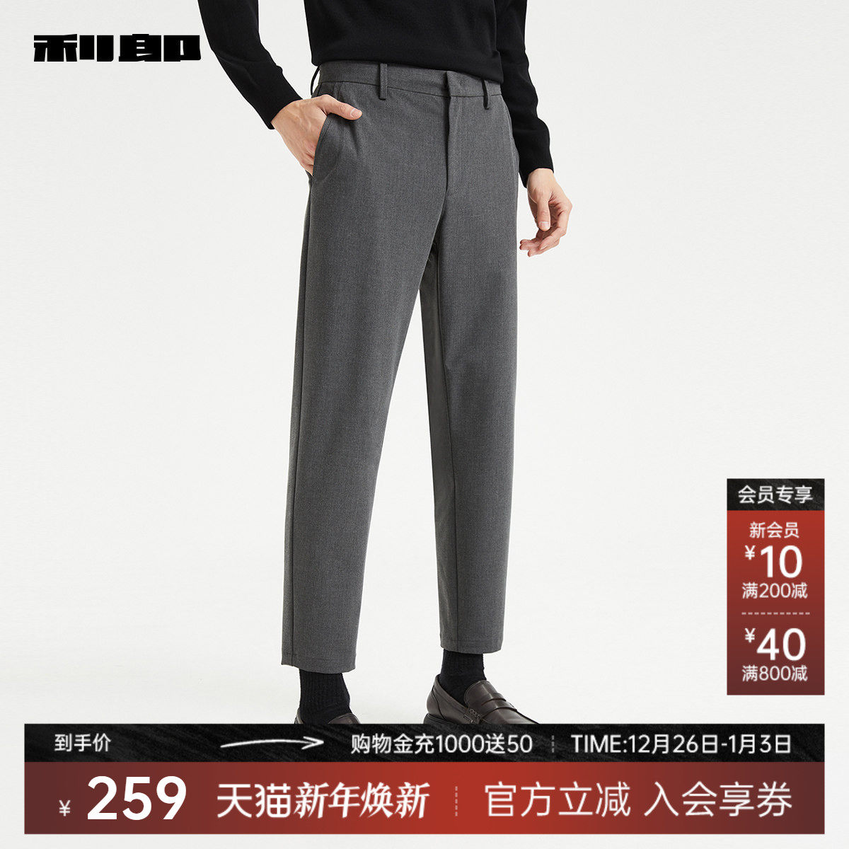 【九分裤】利郎休闲裤男士宽松弹力商务2025秋季中灰色刺绣裤子男