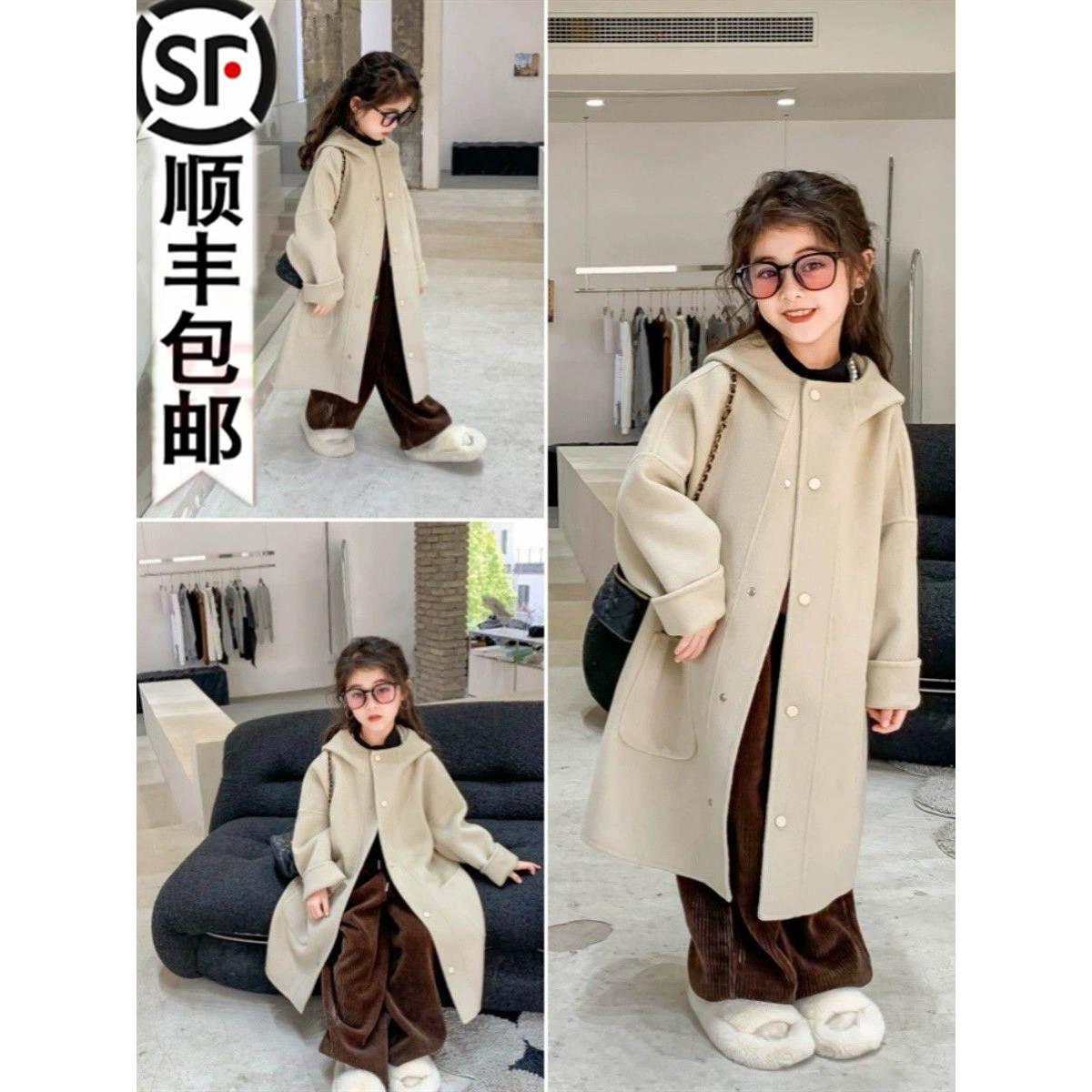 女童双面呢羊绒大衣羊绒童装韩版儿童连帽新款毛呢子2025秋冬外套