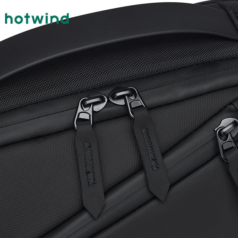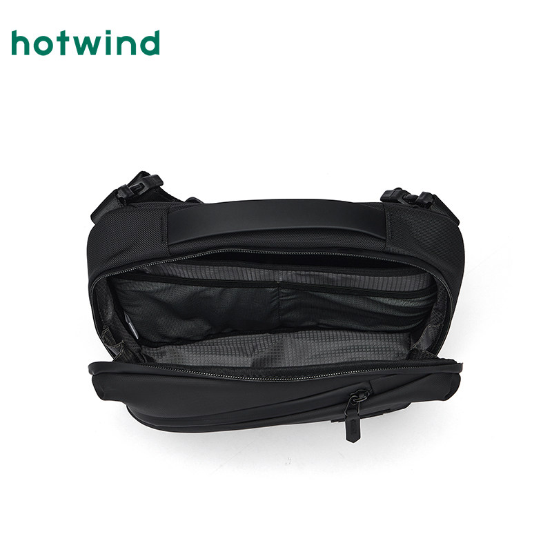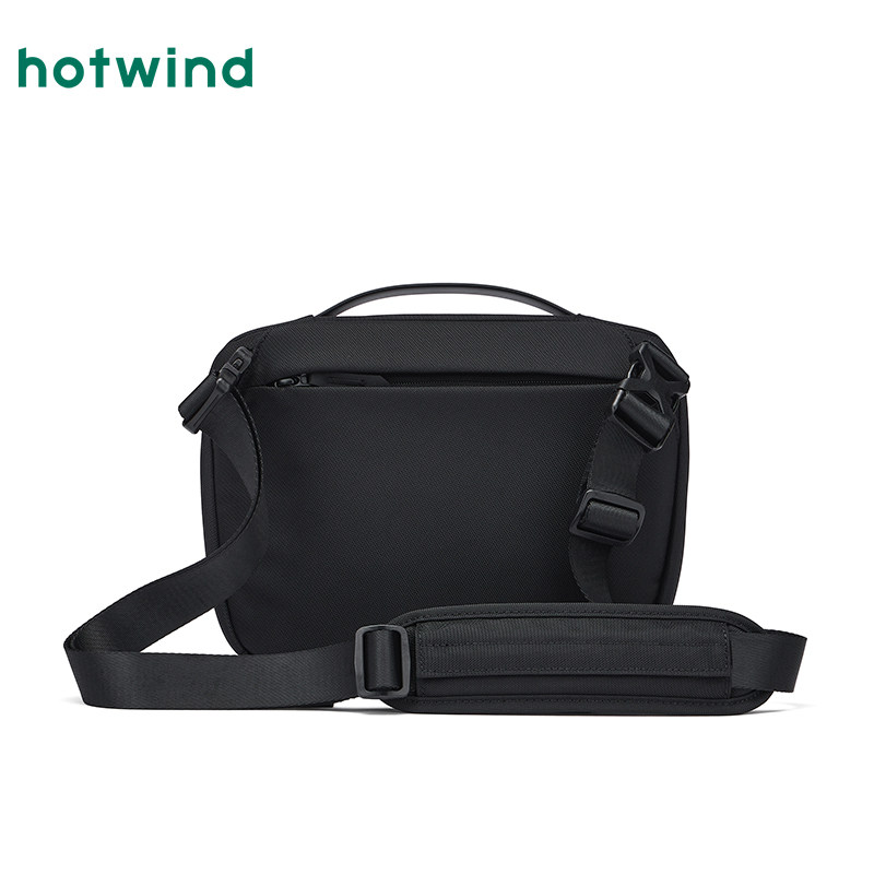 热风男士黑色背包2025年秋季新款弧形拉链斜挎包功能分区通勤包