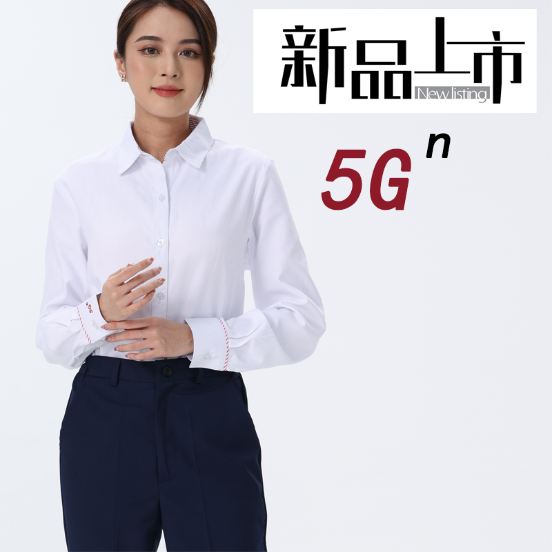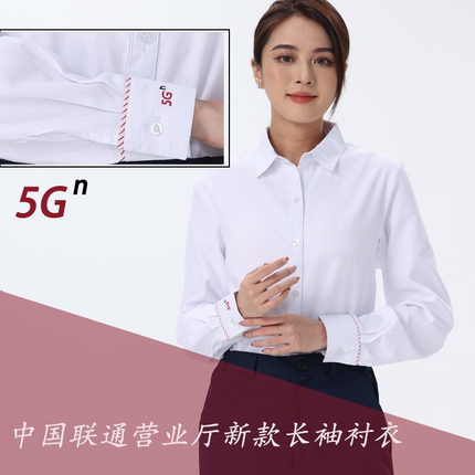 新款中国联通工作服女士长袖衬衣白色条纹5G衬衫春秋季营业厅工装