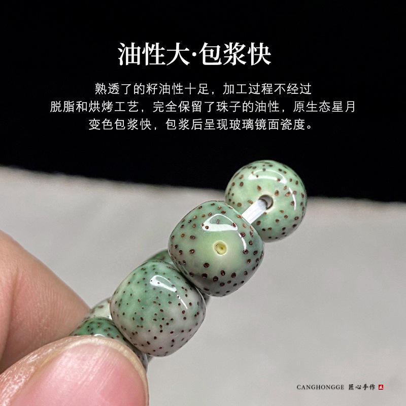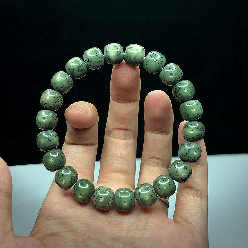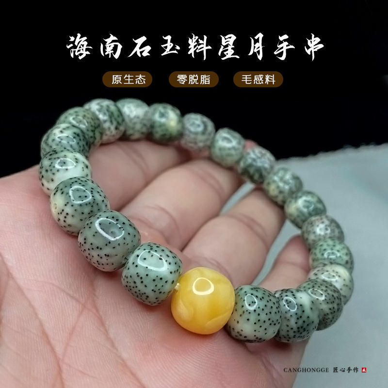 原生态石玉料阴绿皮星月菩提手串高密度男女单圈手链佛珠盘玩念珠