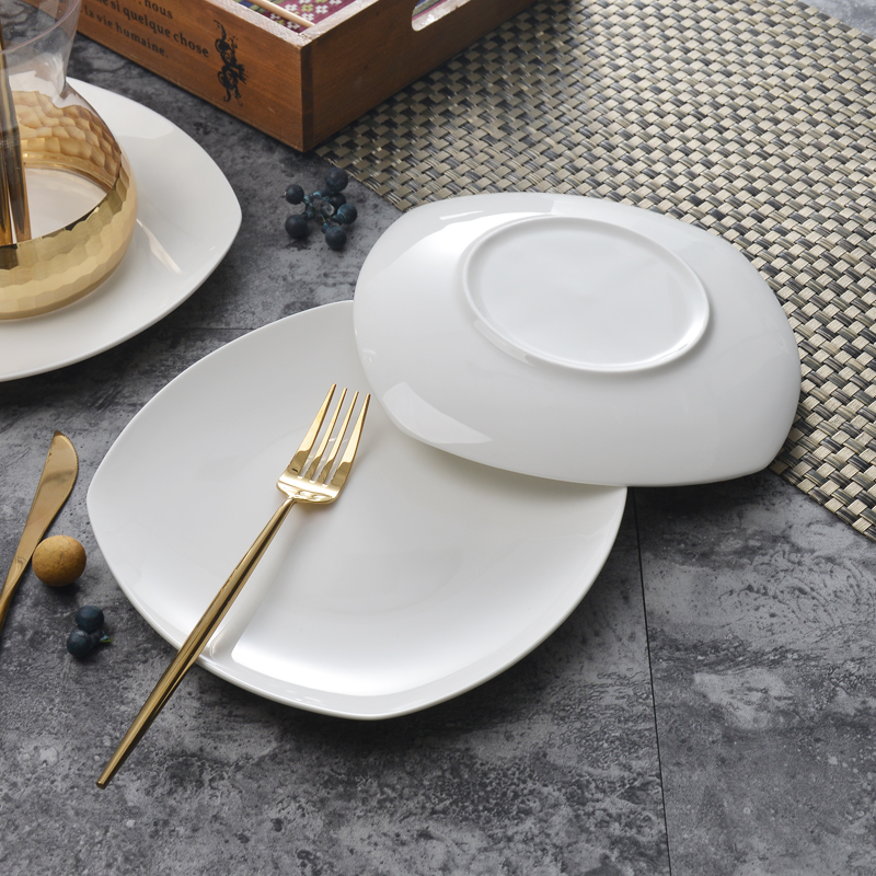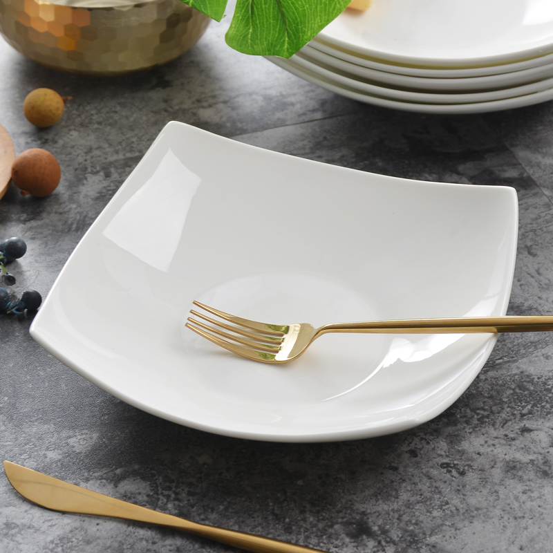 纯白骨瓷盘子 多款器型 白色方形平盘牛排盘凉菜盘 圆形汤盘饭盘