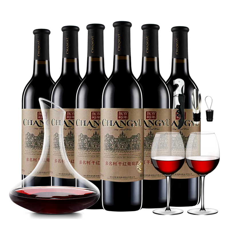 张裕官方正品1892红酒赤霞珠干红葡萄酒国产红酒2/6支酒具礼盒装