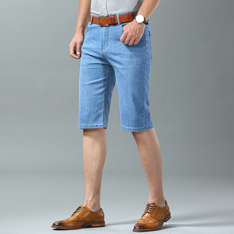 男士牛仔短裤男七分裤中年冰丝男裤直筒宽松六分夏季超薄五分中裤