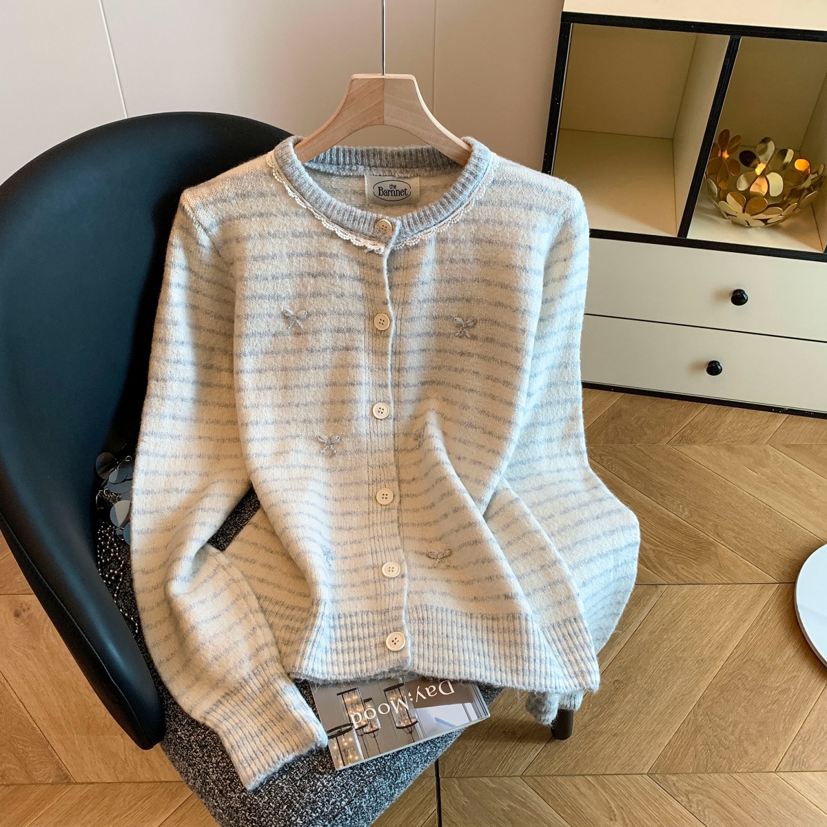 实拍漂亮小上衣秋冬女装2025新款温柔风条纹针织开衫软糯毛衣外套