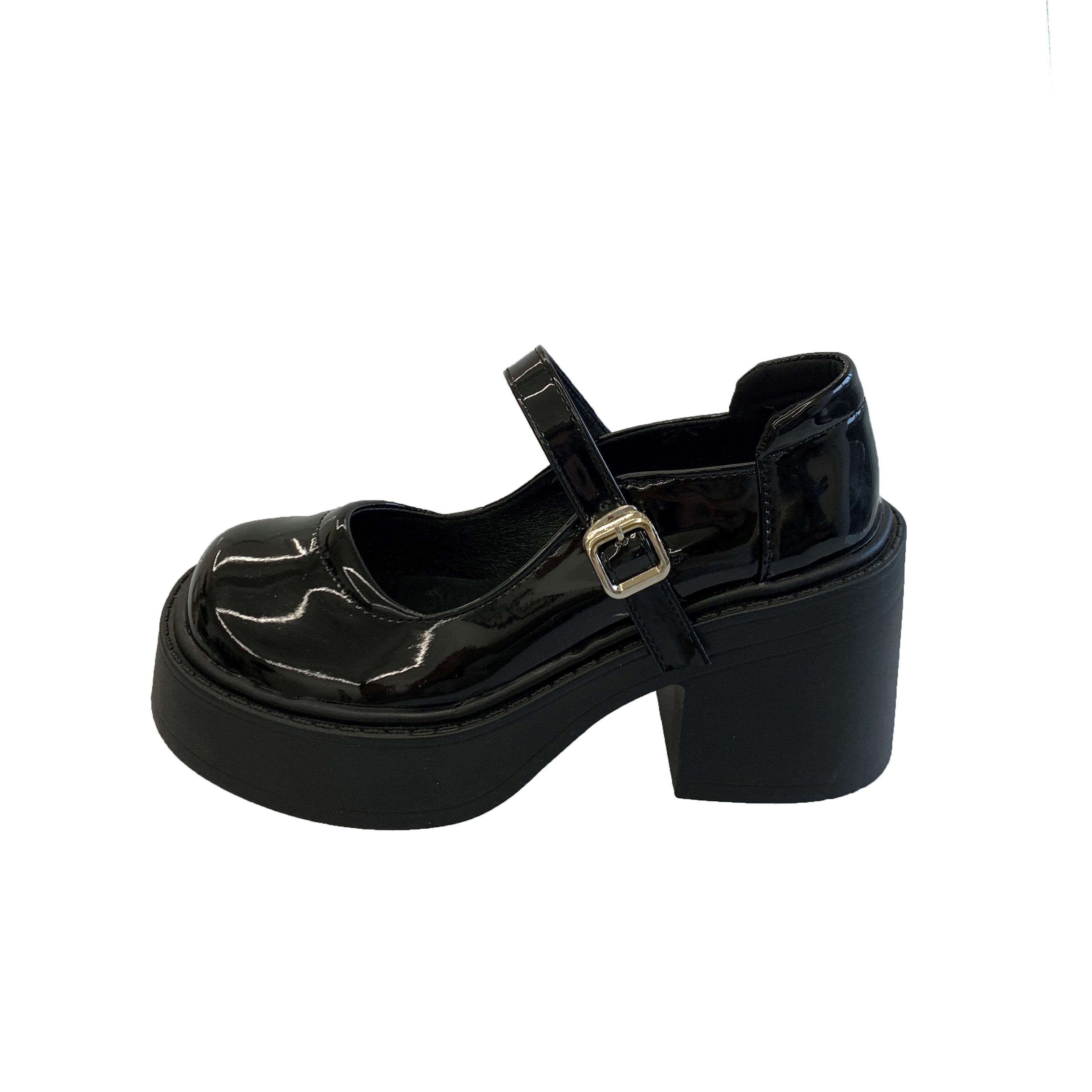 甜酷粗跟高跟小皮鞋女2024春夏季新款厚底增高法式复古玛丽珍百搭