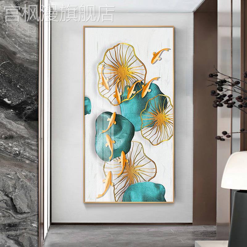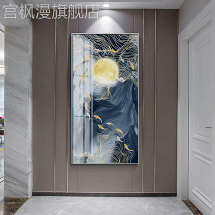 现代简约玄关装饰画九鱼图轻奢高档挂画客厅招财风水进门入户壁画