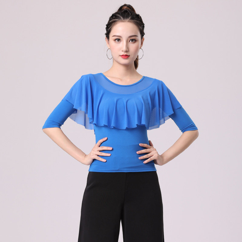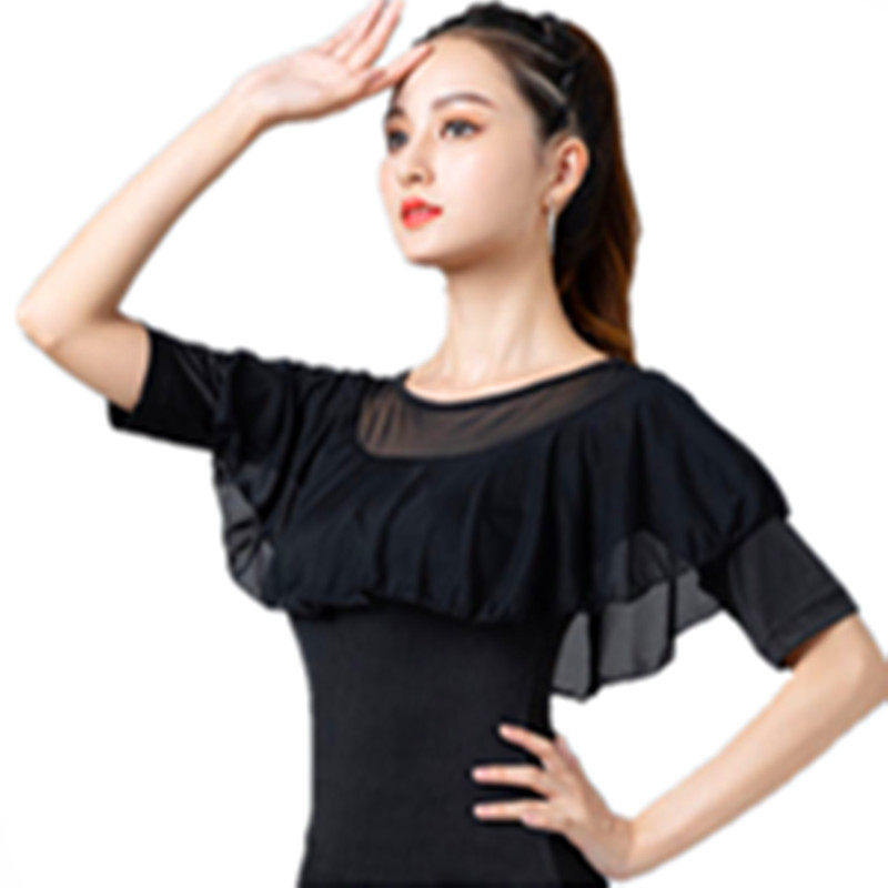 拉丁舞上衣舞蹈练功服春夏新款摩登舞成人跳舞服装长短袖修身舞衣