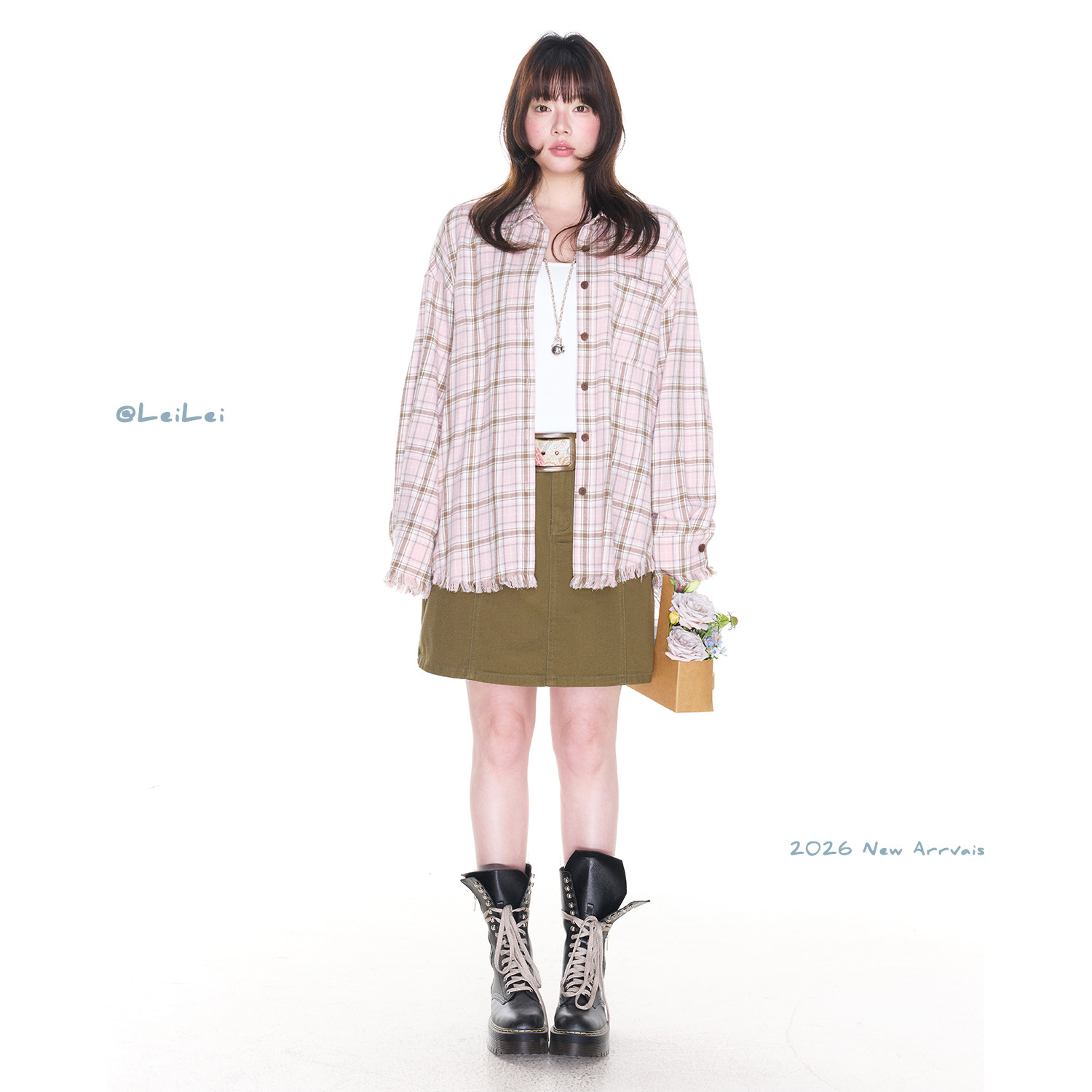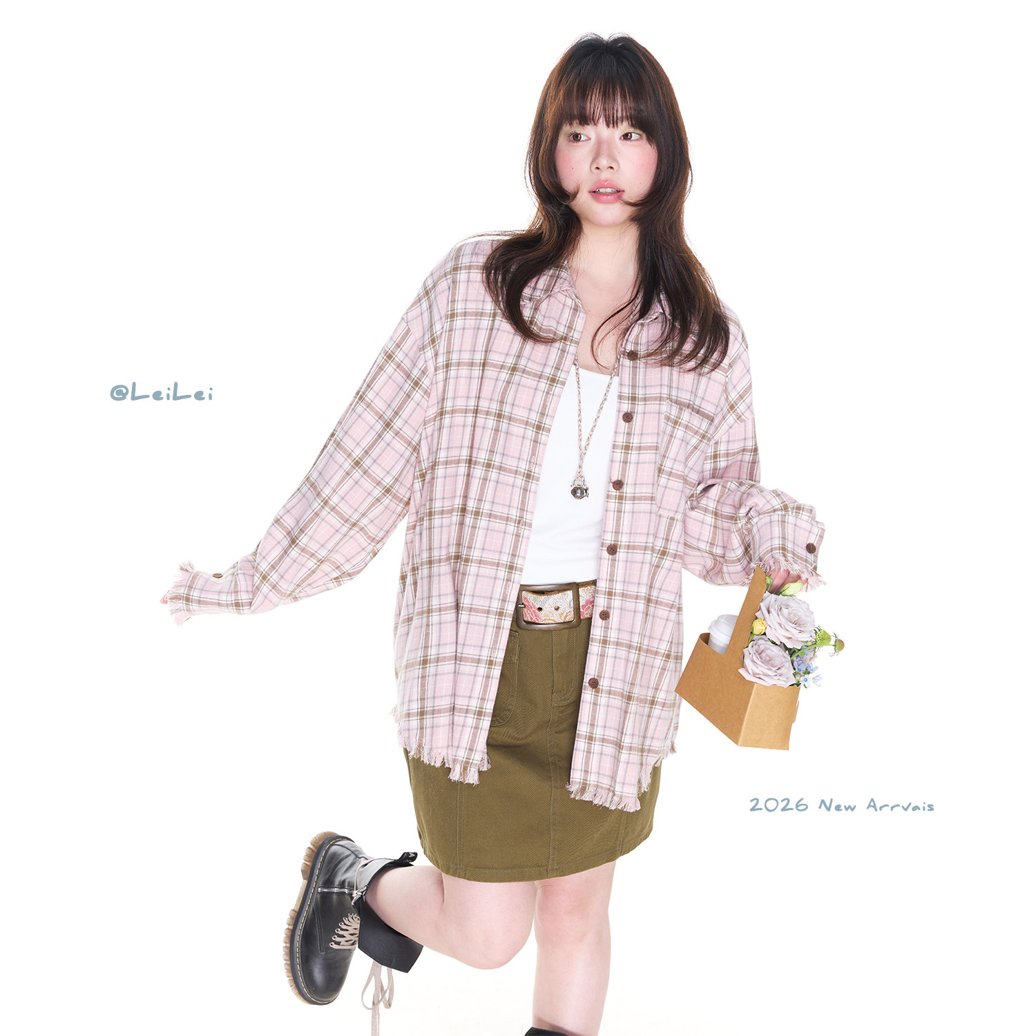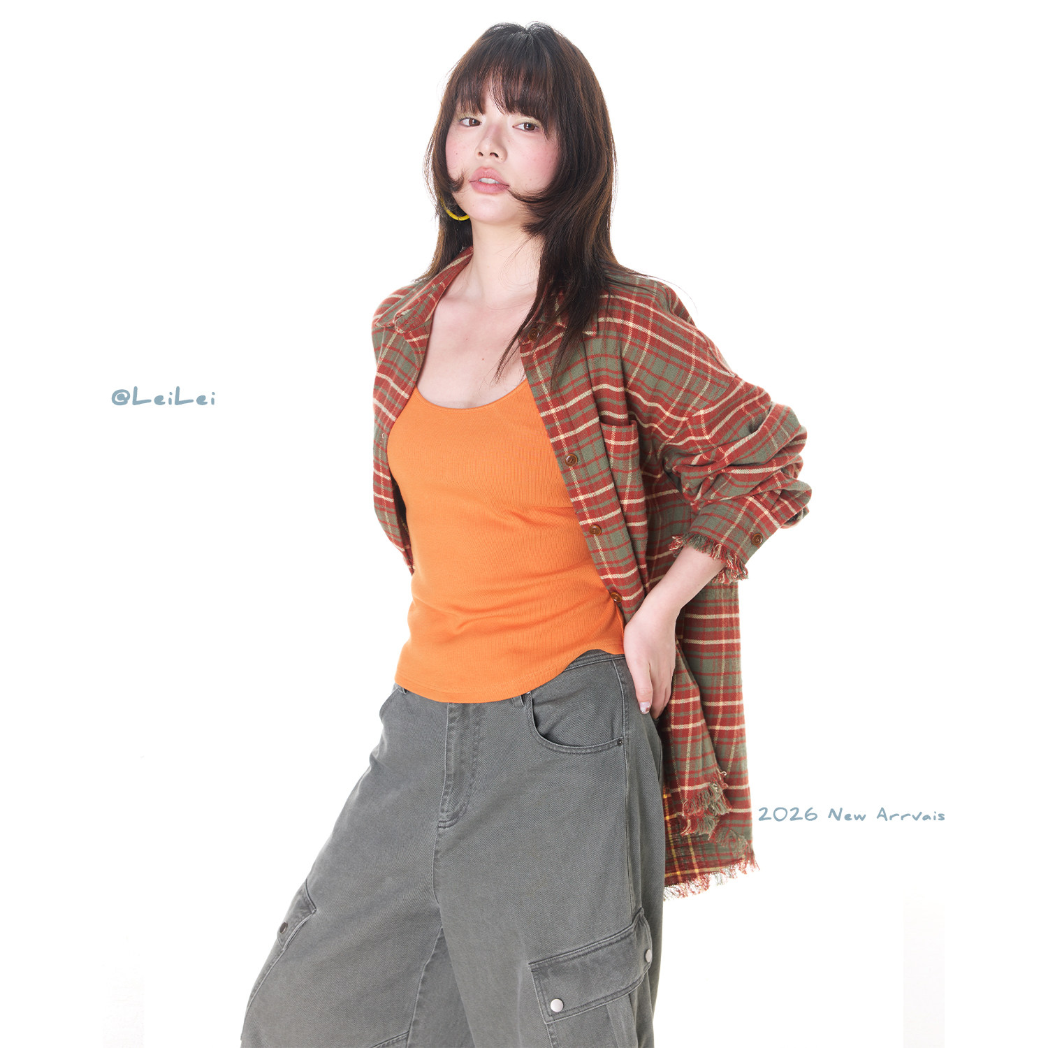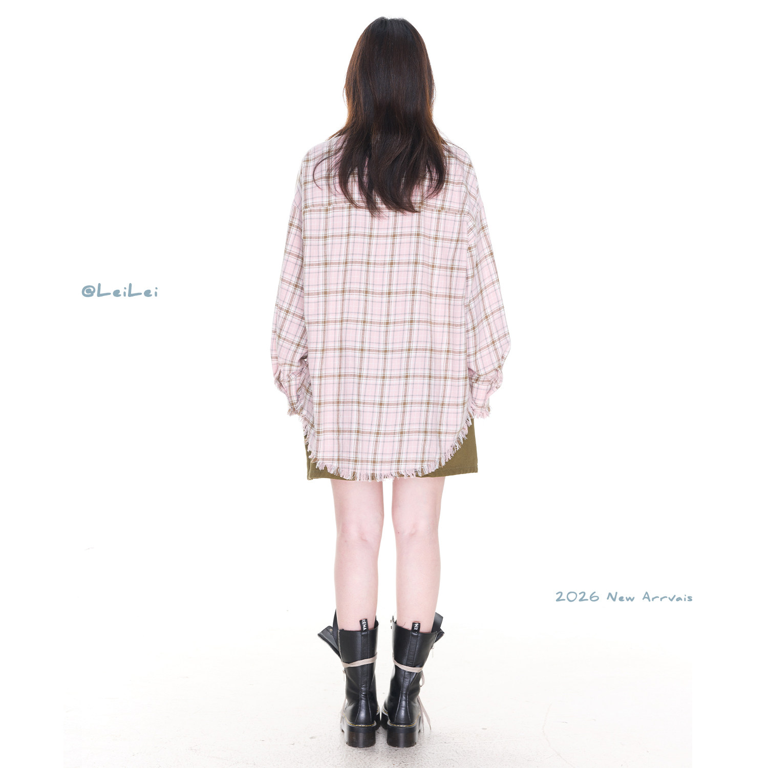 蕾蕾【撞色玩咖】韩版撞色格纹宽松翻领衬衫上衣