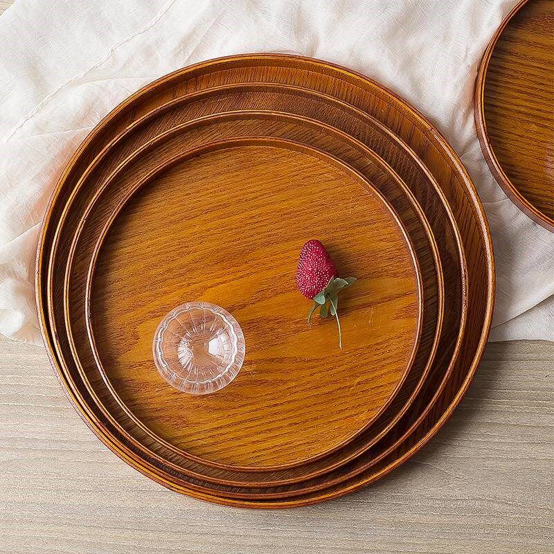 木制托盘圆形水果盘子木盘子茶盘快餐托盘幼儿园托盘酒店饭店餐具