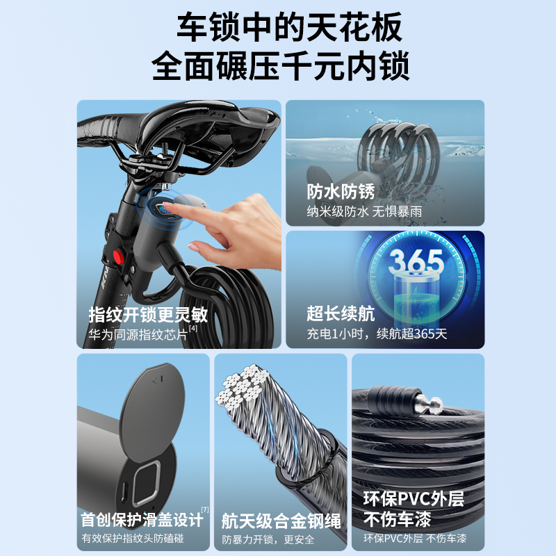 亿联智能单车指纹锁新型自行车锁固定式山地车防盗链条锁链子锁