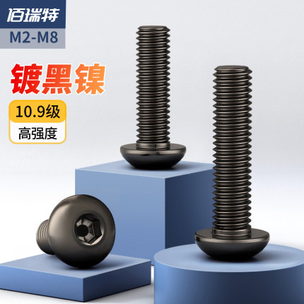 10.9级高强度黑镍圆头内六角螺丝盘头螺栓螺钉大全M2M2.5M3M4M6M8