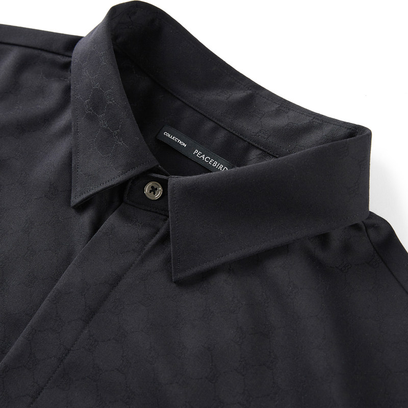 【商场同款】太平鸟男装 2023年春季新款黑色长袖衬衫男B1CAD1X26