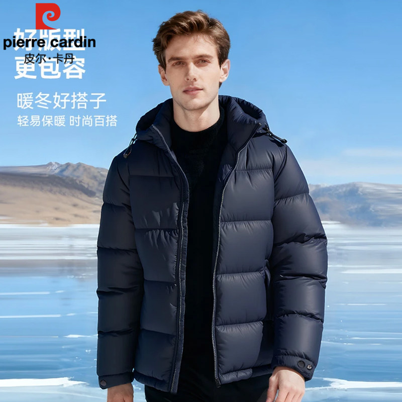 皮尔卡丹90鸭绒连帽羽绒服男女情侣款加厚保暖面包服外套