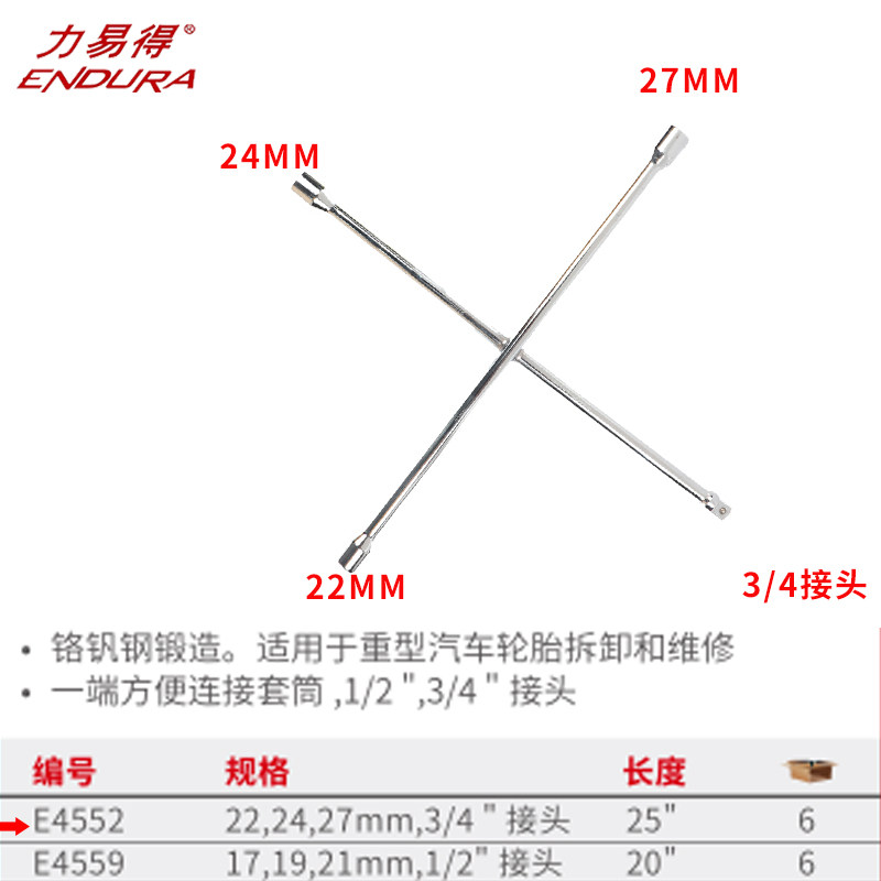 力易得汽修工具十字轮胎扳手E4552 E4559手动套筒扳手E4556
