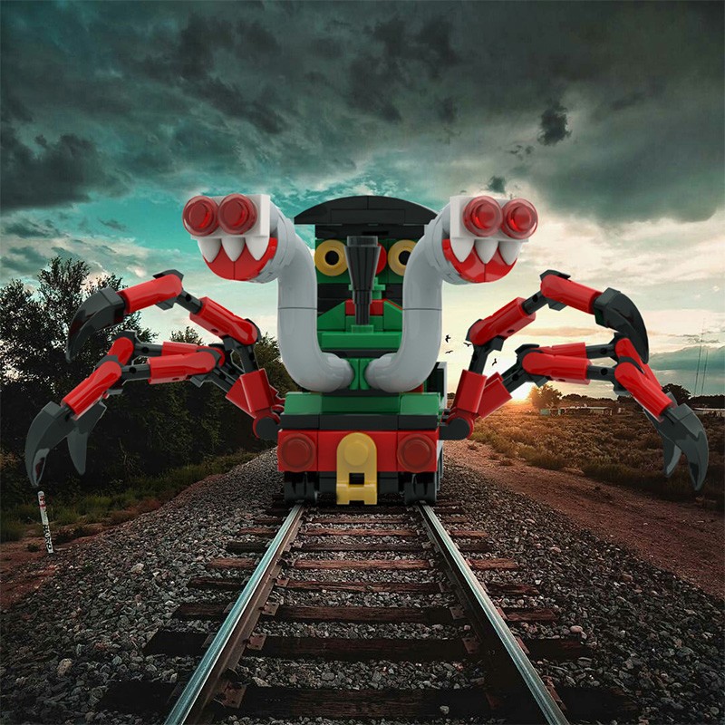 创意设计系列查尔斯小火车变异绿色小车模型儿童益智拼搭积木玩具