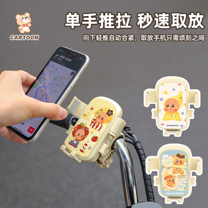 新款线条狗电动车手机支架摩托车导航架电瓶车自行车固定手机架