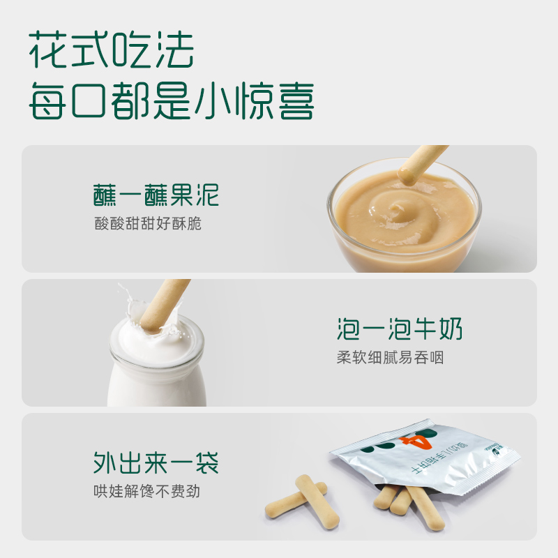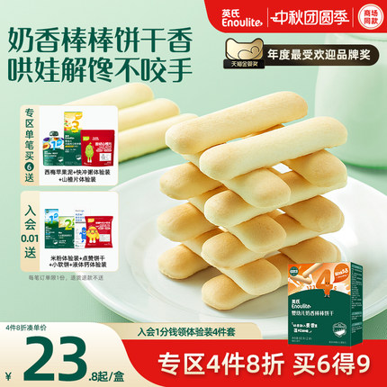 【4件8折】英氏婴儿奶香棒棒饼干2盒儿童零食磨牙6组送婴幼儿辅食