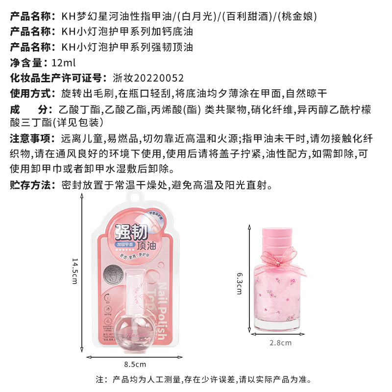miniso名创优品KH小灯泡护甲系列加钙底油梦幻星河油性指甲油顶油