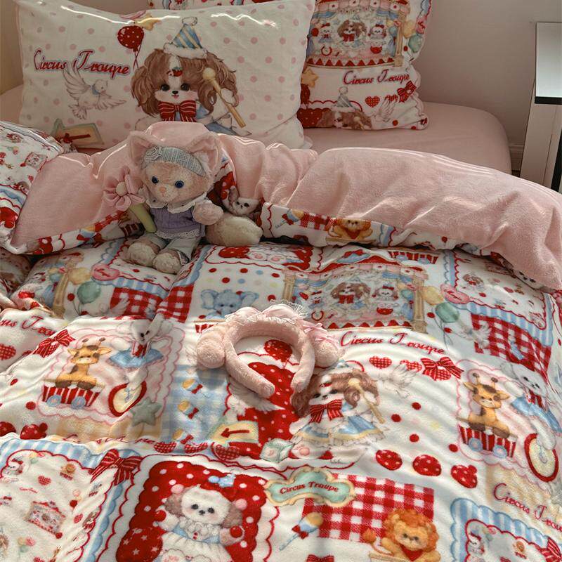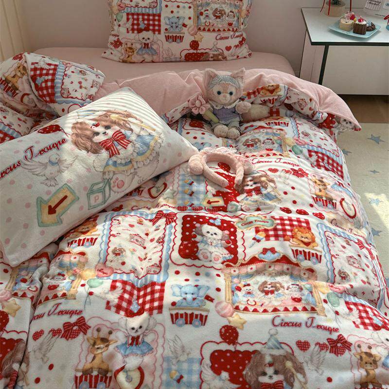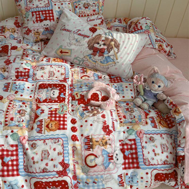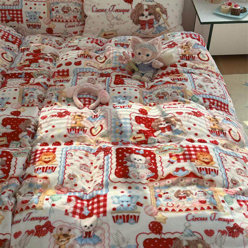 梨梦 圣诞派对 可爱秋冬牛奶绒四件套保暖珊瑚绒床单被套床上用品
