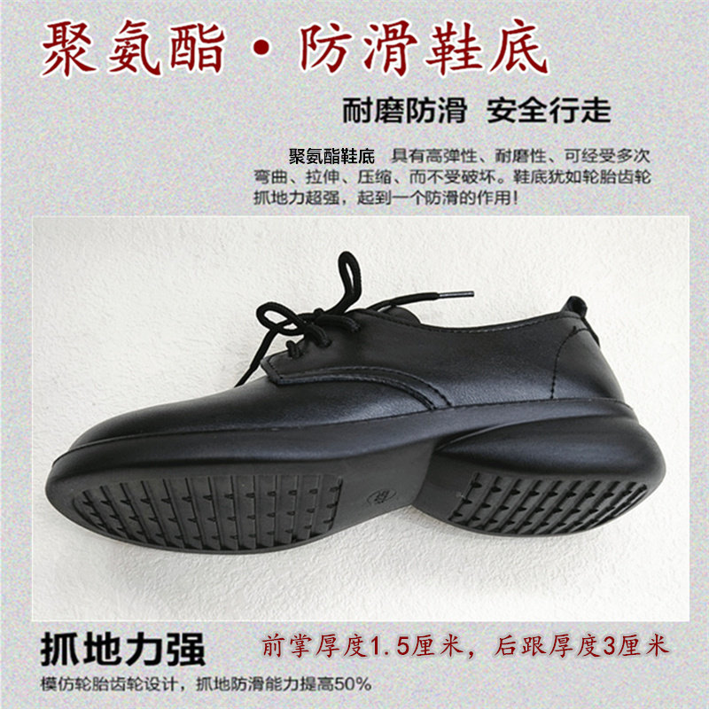 春秋低跟皮鞋黑色休闲单鞋系带妈妈鞋子软底防滑中年妇女鞋不累脚
