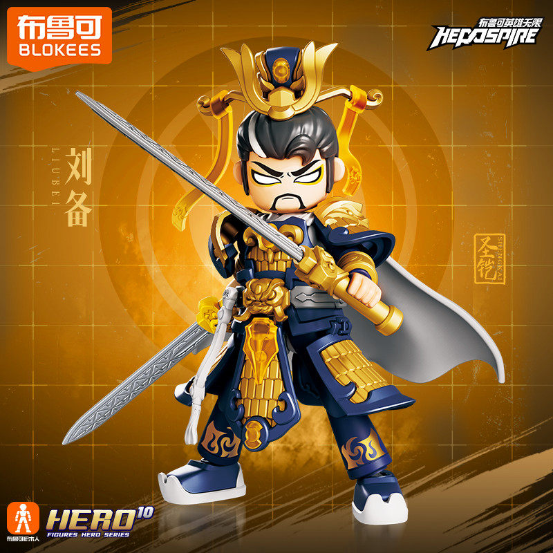 新品圣铠刘备布鲁可积木人英雄无限三国机甲克男孩拼装可动玩具