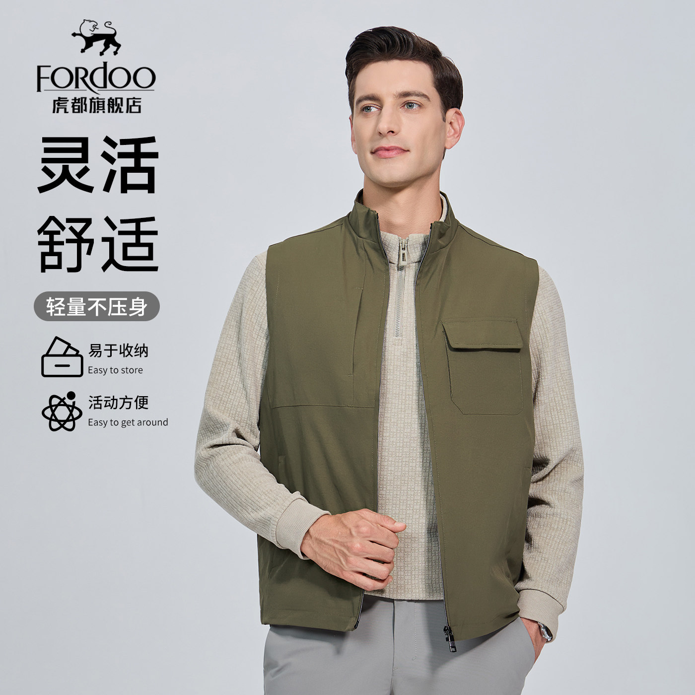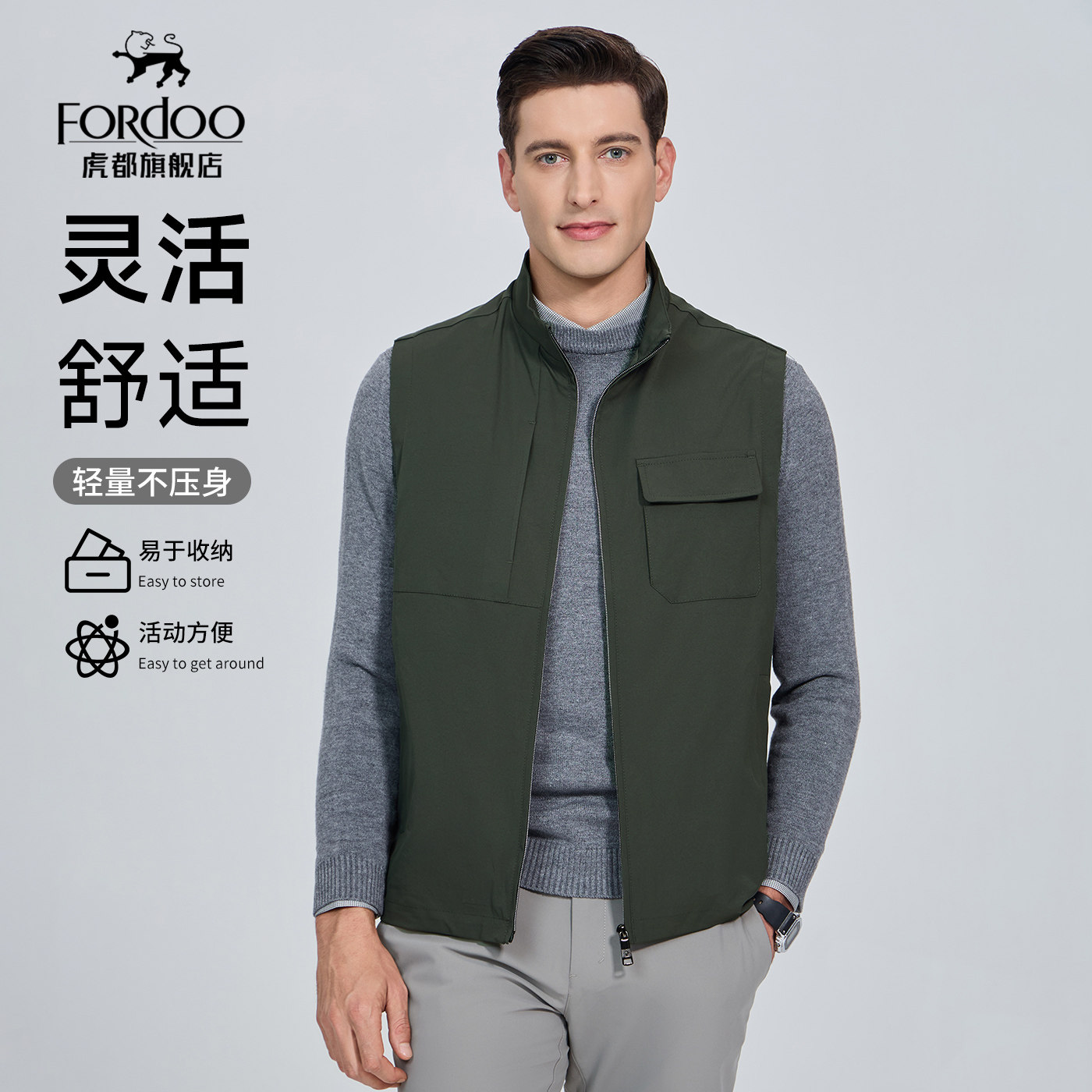 虎都官方旗舰店男装纯色百搭马甲