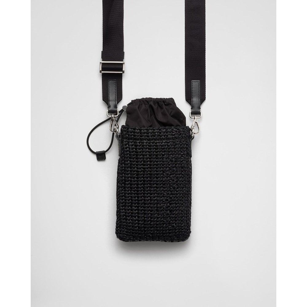 自营欧洲直邮Prada普拉达 男士黑色小牛皮logo标识拉链开合手机包