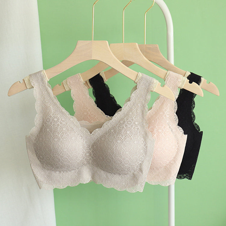 古妃无痕一片蕾丝文胸舒适无钢圈薄款背心内衣透气睡眠女胸罩聚拢