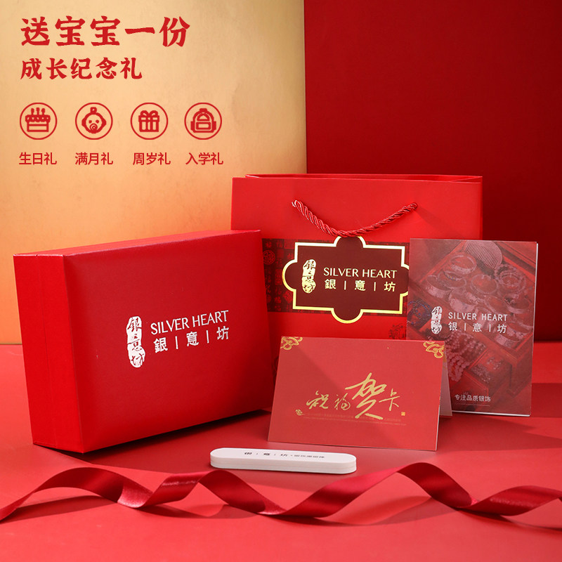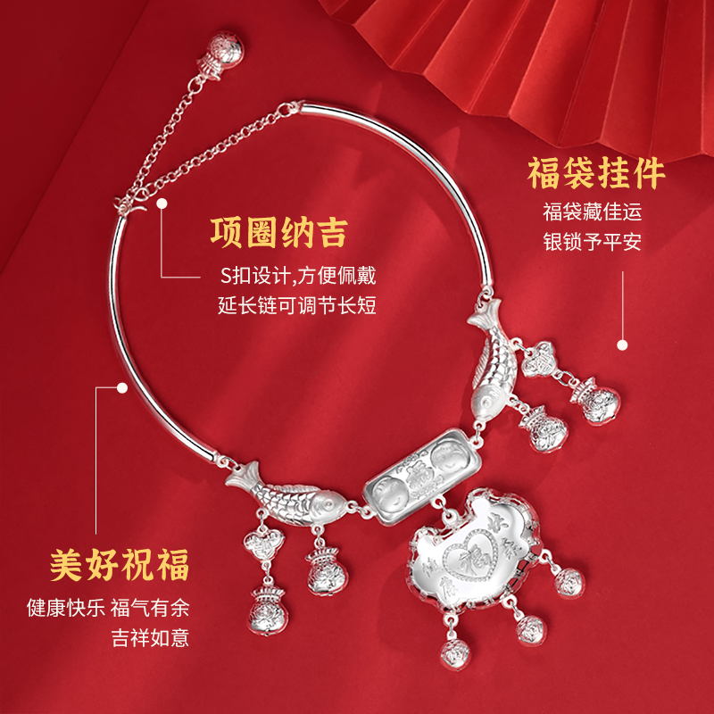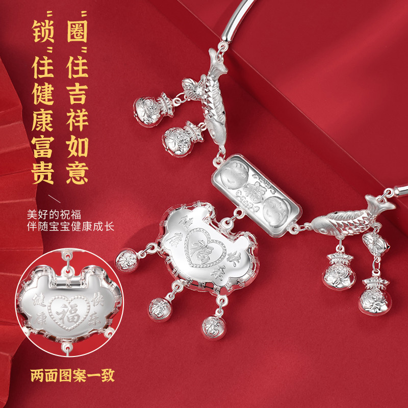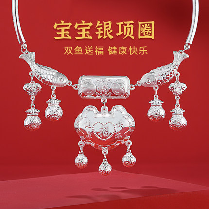 银锁纯银宝宝长命锁999足银项圈婴儿儿童首饰新生的儿见面礼银饰