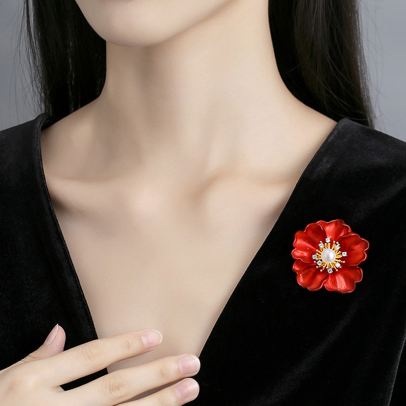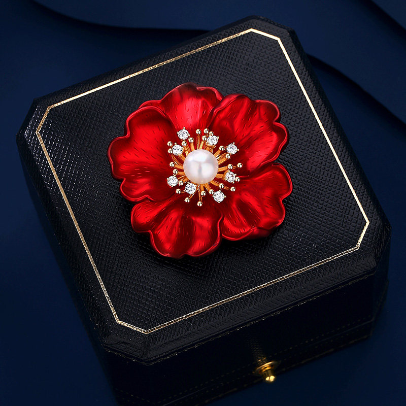 【紫罗兰正版】丹红花胸针精致高档牡丹花胸花礼服别针生日礼物