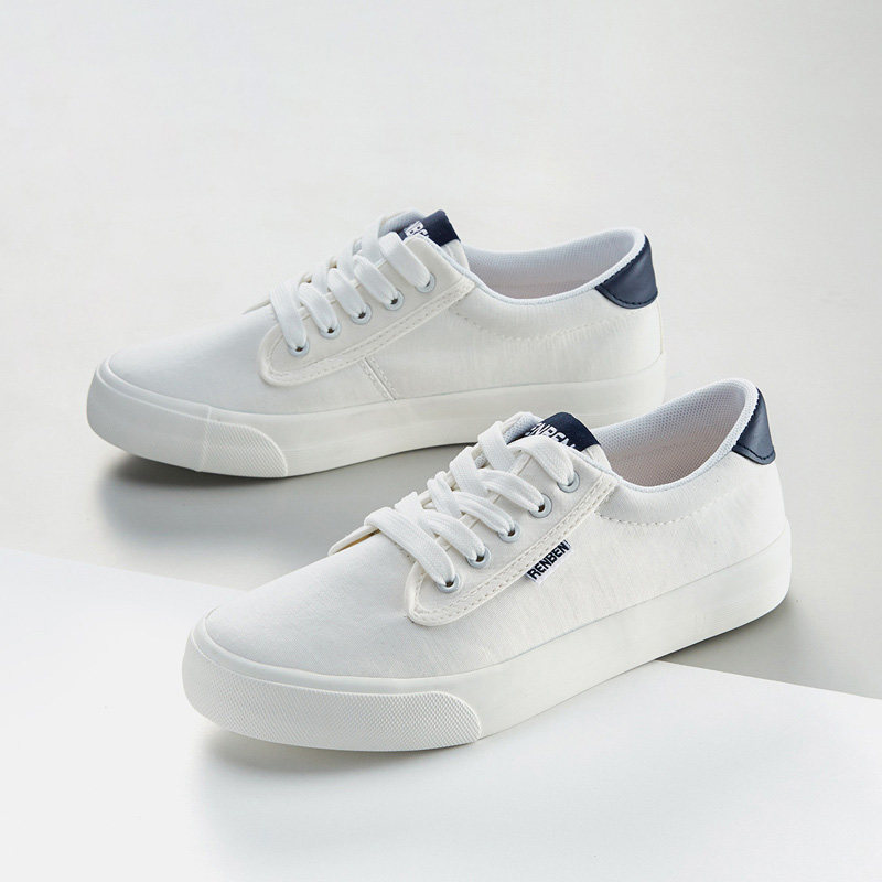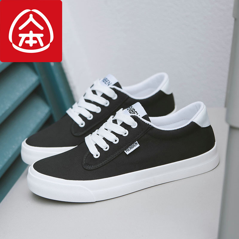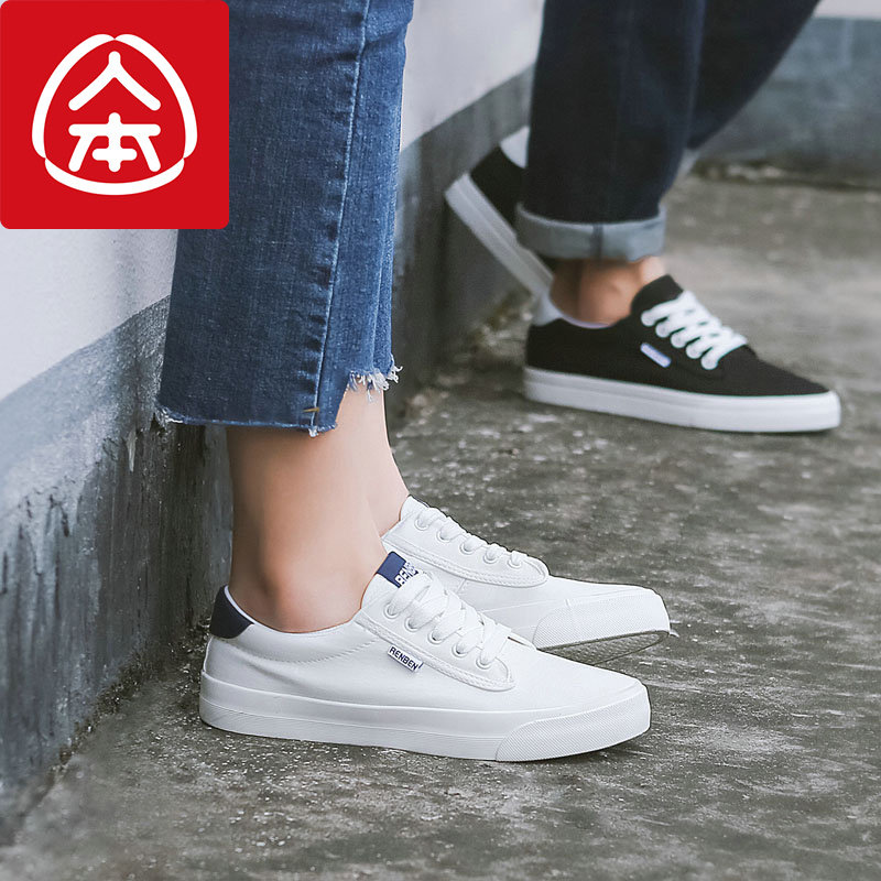 人本帆布鞋女百搭配裙子的小白鞋2022春韩版情侣平底板鞋布鞋网红