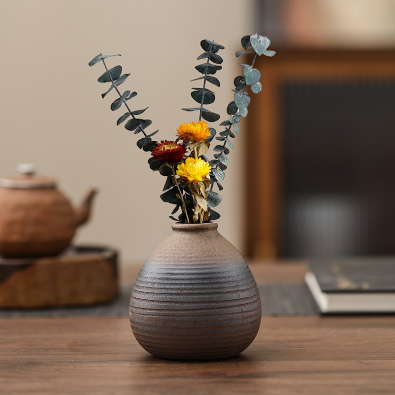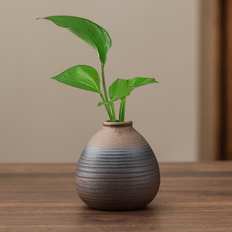 粗陶创意手工花瓶小号中式陶瓷花器花艺日式花插水培绿植复古摆件
