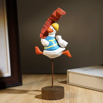“今天也要加油搬砖鸭”手工木雕小摆件办公室桌面工位装饰品礼物