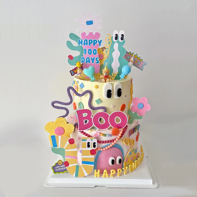 网红可爱彩色元素儿童蛋糕装饰字母模具手绘小熊迷你帽子气球装扮