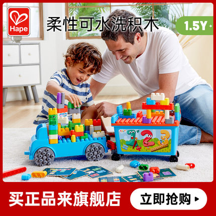 Hape趣味数字收纳卡车套PolyM软积木宝宝儿童管道大颗粒益智玩具