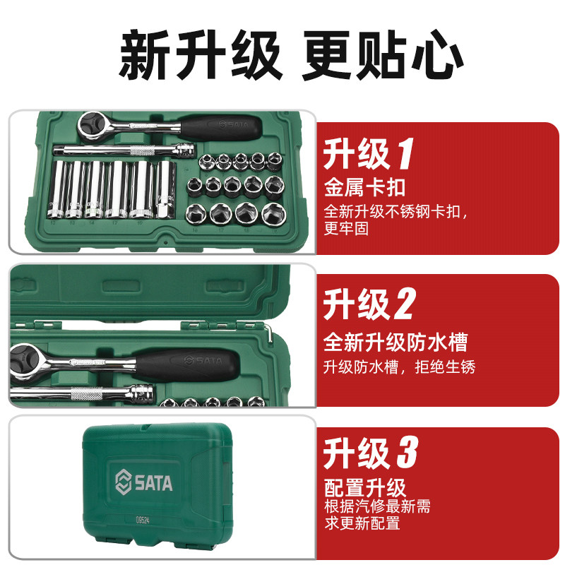 世达22件中飞套筒组合套装汽修修车工具套装棘轮扳手全套09524
