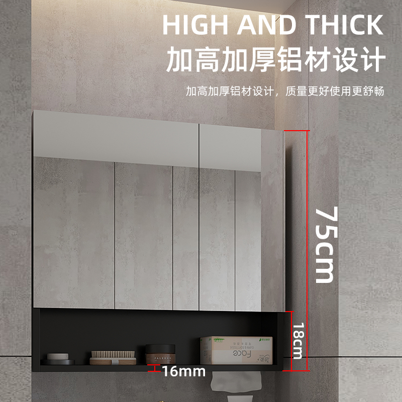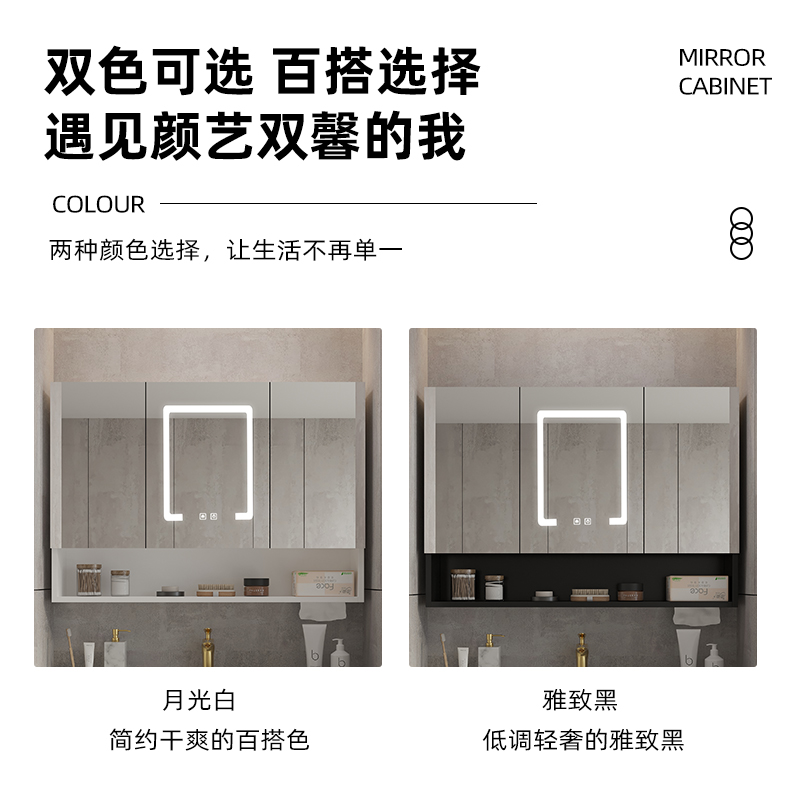 简约太空铝浴室镜柜挂墙式卫生间智能G镜子带置物架单独镜箱收纳