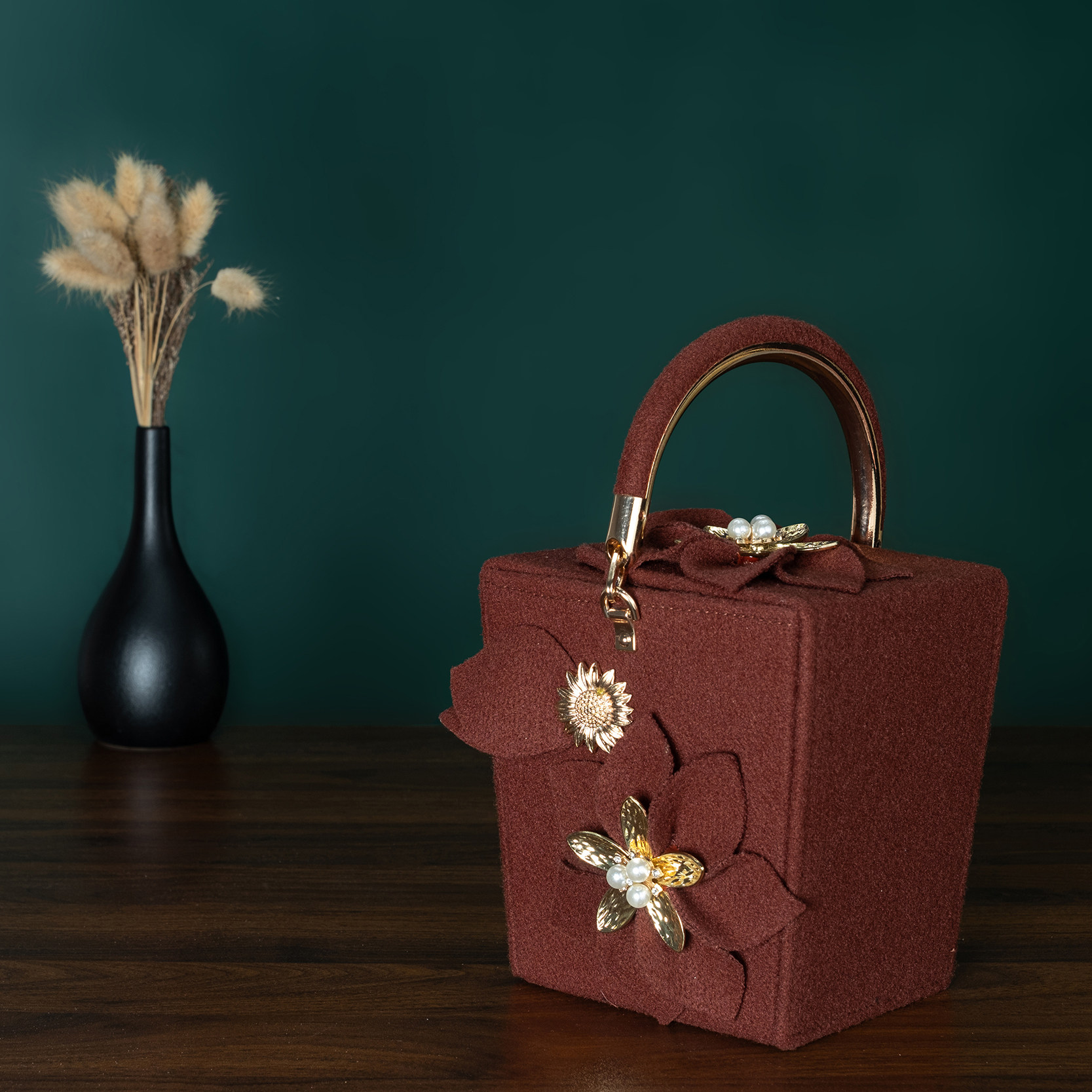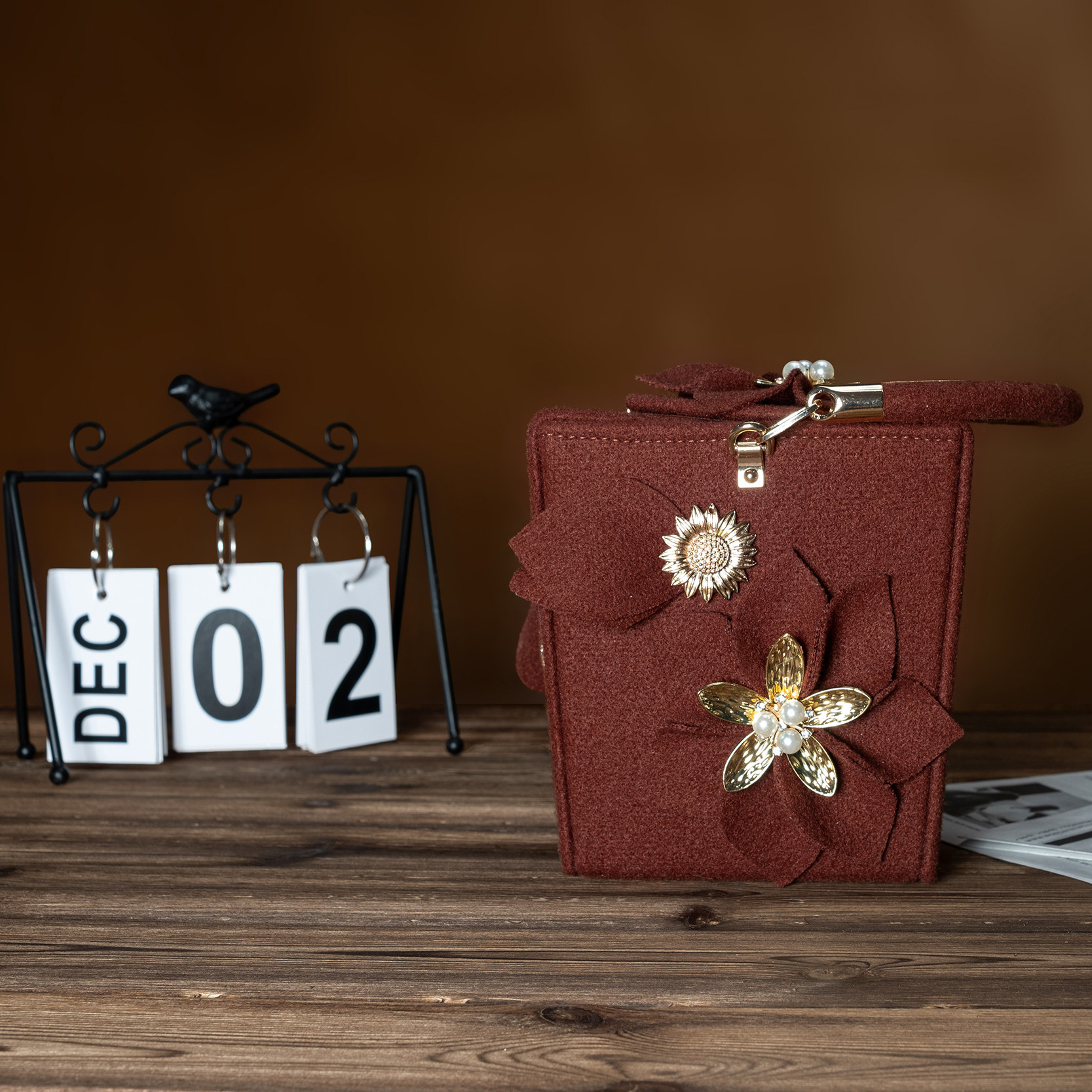 秋冬复古咖啡色名媛毛呢小方包焦糖色高级感精致独特盒子手提女包