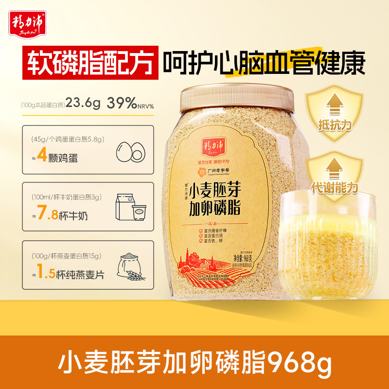 精力沛高蛋白低GI小麦胚芽加卵磷脂968g+原味300g营养即食麦片