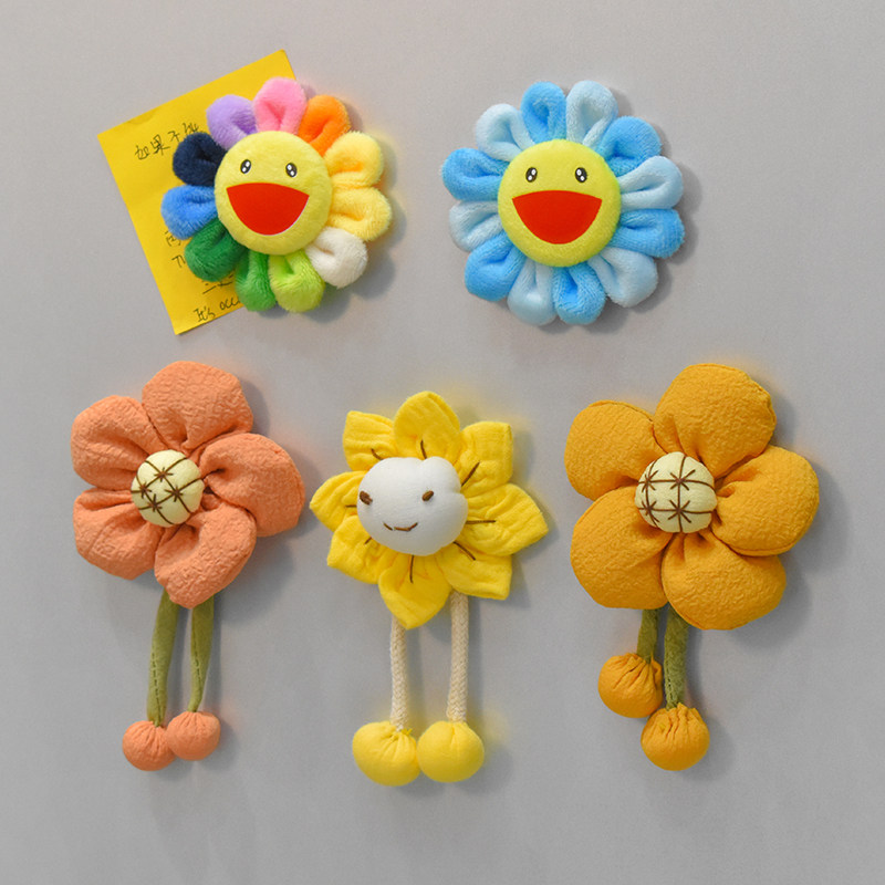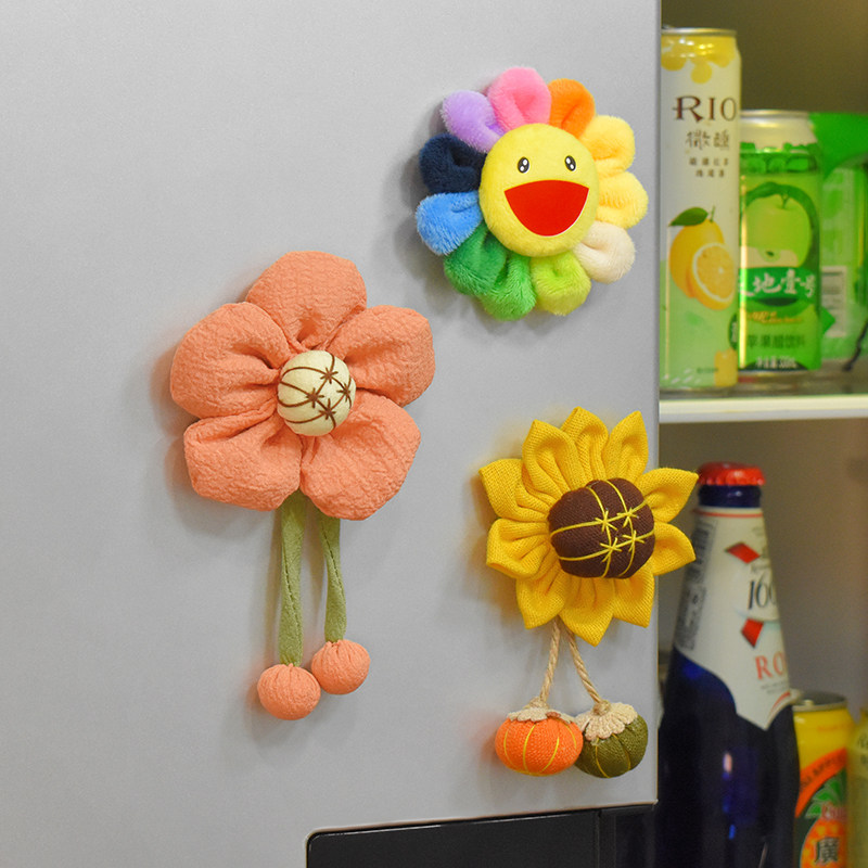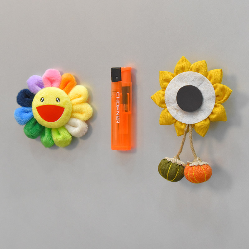 向日葵布艺毛绒冰箱贴装饰贴配件可爱日系七彩太阳花磁吸磁力贴